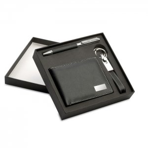 Artikel-Nr: OCBKC7109-03Elegantes Geschenkset in einer Geschenkschachtel bestehend aus: Kugelschreiber (blaue Tinte), Schlüsselanhänger und Geldbörse aus PU mit Kontrastnähten.