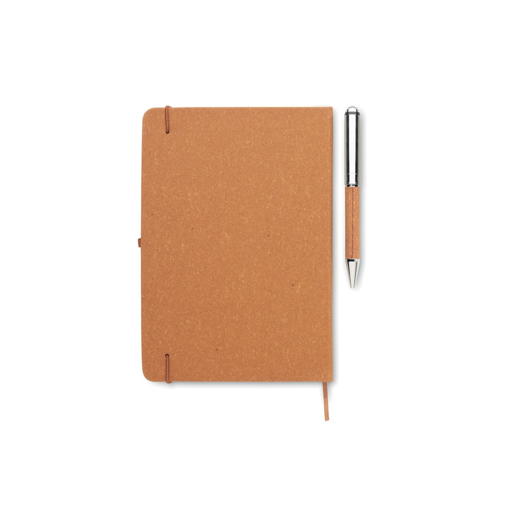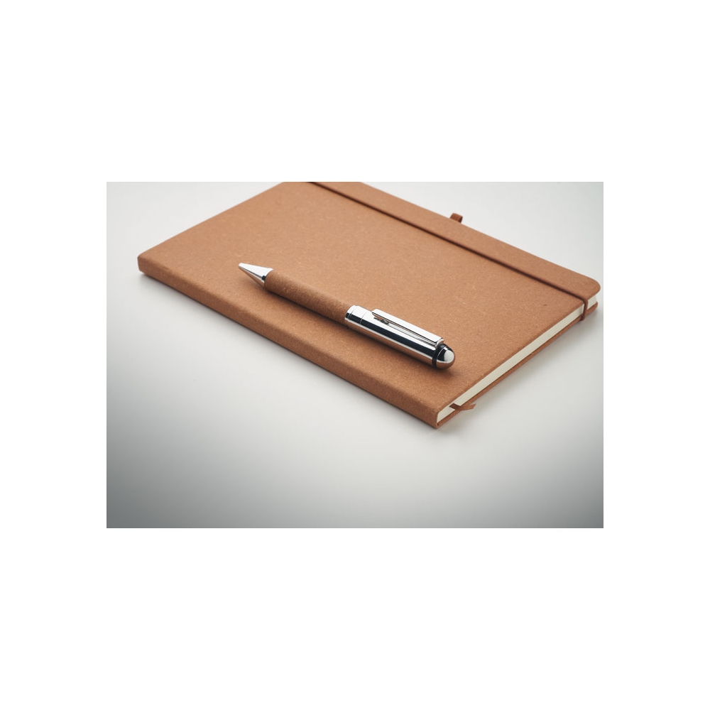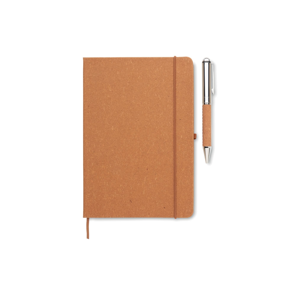 Artikel-Nr: OCBMO2195-13Geschenk-Set. DIN A5 Notizbuch mit gebundenem Hard Cover aus recyceltem Leder (75%). 80 Blatt (160 Seiten) liniertes recyceltes Papier. Elastisches Verschlussband, Stiftschlaufe und Lesebändchen. Passender Drehkugelschreiber aus Metall. Blaue Tinte. Lieferung in einer Schachtel aus Kraftpapier. FSC®-certified | FSC MIX CREDIT, P7.1, FSC-C213206