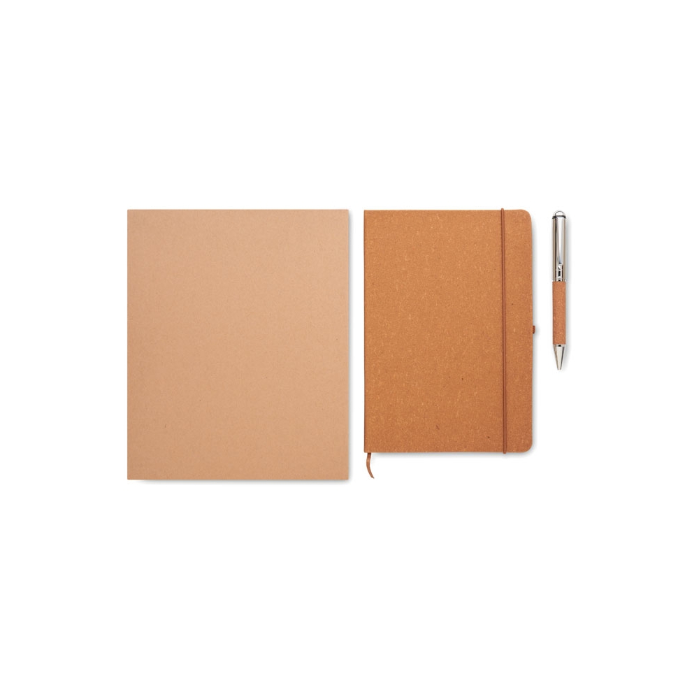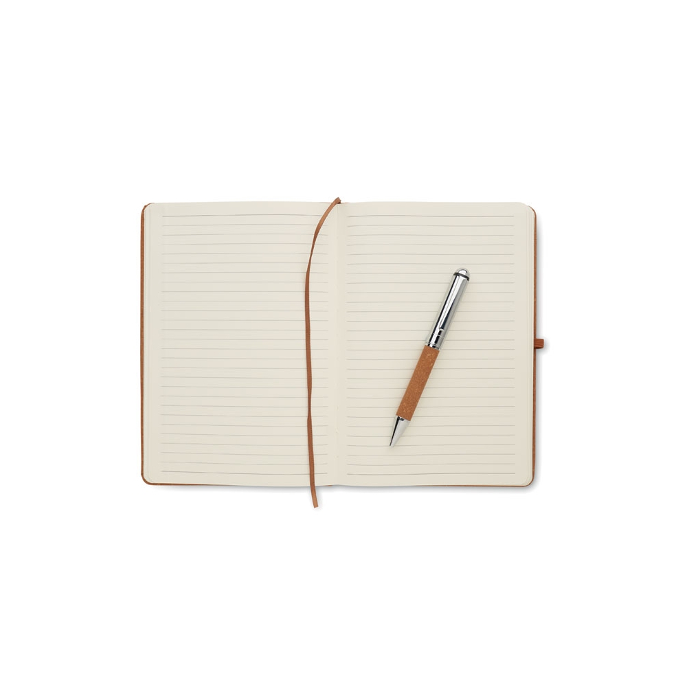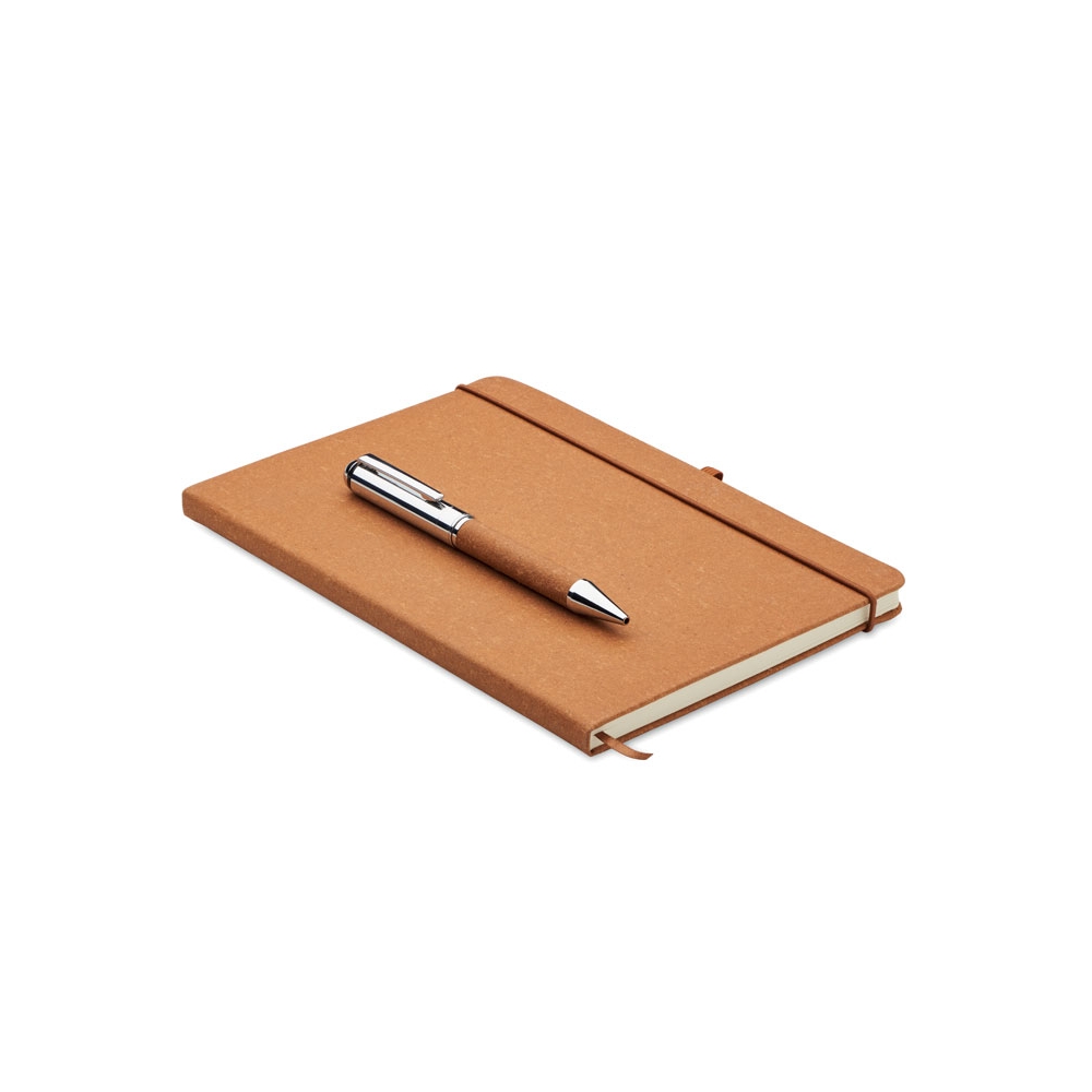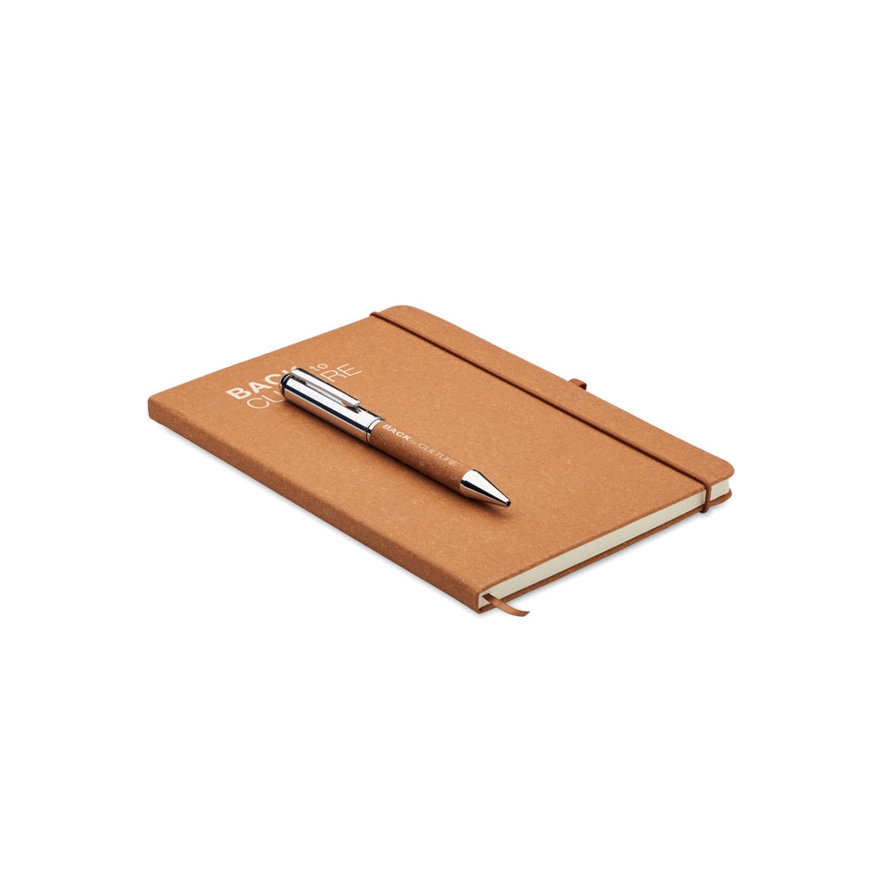 Artikel-Nr: OCBMO2195-13Geschenk-Set. DIN A5 Notizbuch mit gebundenem Hard Cover aus recyceltem Leder (75%). 80 Blatt (160 Seiten) liniertes recyceltes Papier. Elastisches Verschlussband, Stiftschlaufe und Lesebändchen. Passender Drehkugelschreiber aus Metall. Blaue Tinte. Lieferung in einer Schachtel aus Kraftpapier. FSC®-certified | FSC MIX CREDIT, P7.1, FSC-C213206