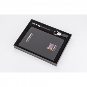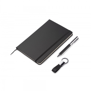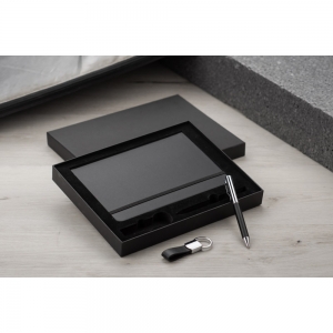 Artikel-Nr: ARD17792-02Das PROBIZ-Set besteht aus einem Notizbuch, einem Stift und einem Schlüsselanhänger. Das Notizbuch hat glatte Seiten aus Steinpapier, Format A5. Der Schlüsselanhänger ist aus Metall und lederähnlichem Material (PU). Kugelschreiber mit blauer Tintenmine. Das ganze Set ist in einer geschmackvollen schwarzen Schachtel verpackt. Das Set sieht sehr elegant aus. Produktabmessungen: 145 x 210 x 13 mm (Notizbuch); 132 x ⌀ 10 mm (Stift); 62 x 20 x 9 mm (Schlüsselanhänger); 210 x 260 x 30 mm (Box).