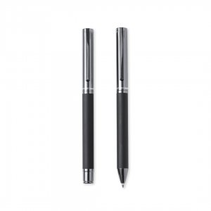 Artikel-Nr: KTO17370002000Antonio Miró Kugelschreiber- und Rollerball-Set. Enthält:Kugelschreiber aus Metall mit mattschwarzem Schaft. Verchromte Beschläge und Kappe mit Markenlogo Jumbo-Patrone und blauschreibender Tinte. Metallischer Tintenroller mit mattschwarzem Schaft. Verchromte Beschläge und Kappe mit Markenlogo. Jumbo-Patrone und blauschreibender Tinte. Präsentiert in einem eleganten und widerstandsfähigen schwarzen Einzeletui mit Antonio-Miro-Logo, Magnetverschluss und passender Schutzhülle.