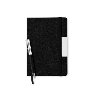 Artikel-Nr: KTO11945002000Set mit Notizbuch und Kugelschreiber aus RPET, hergestellt aus recyceltem Kunststoff, um die Wiederverwendung von Kunststoffabfällen zu fördern und die Nachhaltigkeit unseres Planeten zu unterstützen. Enthält:Notizblock mit festem Einband, mit Metalldetails auf dem Einband, Lesezeichen aus Stoff und passendem Gummiband. 100 linierte Seiten und RPET-Vermerk auf der hinteren Umschlagseite. Verchromter Metallkugelschreiber mit RPET-Polyester-beschichtetem Gehäuse. Eleganter Metallclip und passendes Zubehör, Drehmechanismus und blauschreibende Tinte. Mit RPET-Logo auf dem Gehäuse. Das Set wird in einer eleganten schwarzen Designertasche mit separatem Fach für Notizblock und Stift präsentiert.