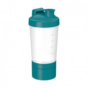 Artikel-Nr: ELT01857010-00320Shake it up! Ideal für den Eiweiß-Shake nach dem Training. Dieser modulare Shaker mit geprägter Skala in 50 ml Schritten und Schraubdeckel mit verschließbarer Trinköffnung beinhaltet ein herausnehmbares Sieb, mit dem sich Shakepulver und Flüssigkeit bei gutem Schütteln optimal vermischen. Zusätzlich verfügt dieser Shaker über zwei abnehmbare Kammern, welche sich separat befüllen lassen. In der kleineren Kammer befindet sich zudem ein herausnehmbarer 3-geteilter Einsatz. Der Mix- Becher lässt sich komplett auseinandernehmen und somit leicht reinigen. Füllmenge (Shaker ohne Zusatzfächer): 0,4 Liter.