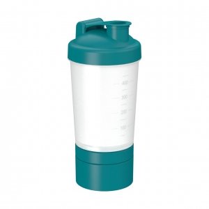 Artikel-Nr: ELT01856010-00320Shake it up! Ideal für den Eiweiß-Shake nach dem Training. Dieser modulare Shaker mit geprägter Skala in 50 ml Schritten und Schraubdeckel mit verschließbarer Trinköffnung beinhaltet ein herausnehmbares Sieb, mit dem sich Shakepulver und Flüssigkeit bei gutem Schütteln optimal vermischen. Zusätzlich verfügt dieser Shaker über zwei abnehmbare Kammern, welche sich separat befüllen lassen. Der Mix-Becher lässt sich komplett auseinandernehmen und somit leicht reinigen. Füllmenge (Shaker ohne Zusatzfächer): 0,4 Liter.
