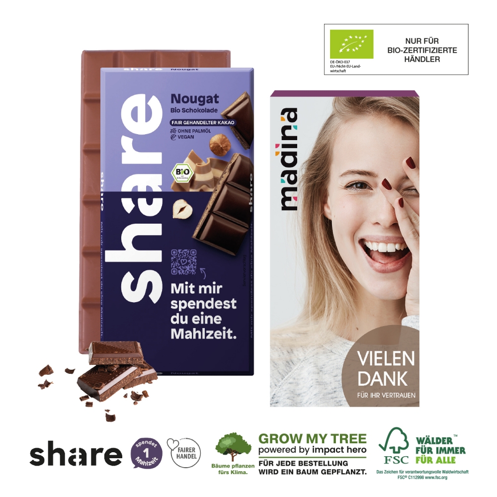 Inhalt: 1 Tafel SHARE Bio Schokolade (100 g).