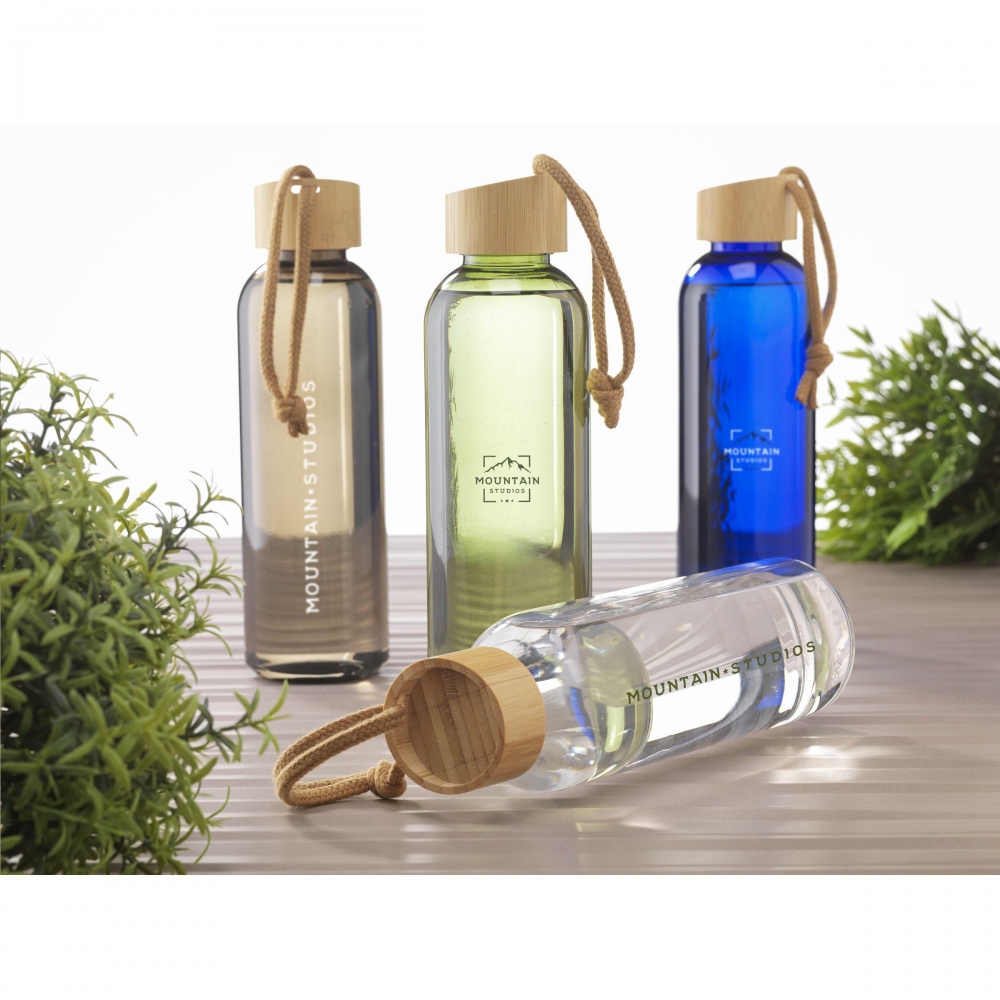 Artikel-Nr: CLP261549-970Iederverwendbare, recycelte Wasserflasche. Die Flasche besteht zu 100% aus RPET. Mit auslaufsicherem Bambus-Schraubverschluss, an dem eine praktische Tragekordel befestigt ist. Das schlanke Design liegt besonders angenehm in der Hand. Nicht spülmaschinengeeignet. GRS-zertifiziert. Gesamtes recyceltes Material: 73%. Fassungsvermögen 700 ml.