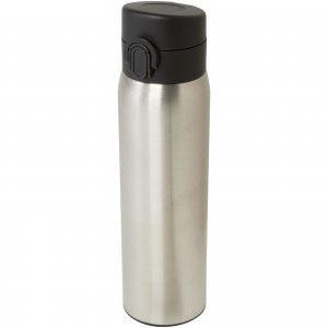 Artikel-Nr: CPO10078881Elegante, RCS-zertifizierte Isolierflasche aus recyceltem Edelstahl mit einfachem Öffnungsmechanismus per Knopfdruck. Die Flasche ist auslaufsicher, und dank der Kupfer-Vakuumisolierung bleiben die Getränke mehrere Stunden lang heiß oder kalt. Das Fassungsvermögen beträgt 450 ml. Verpackt in einer Geschenkbox aus Recyclingkarton.