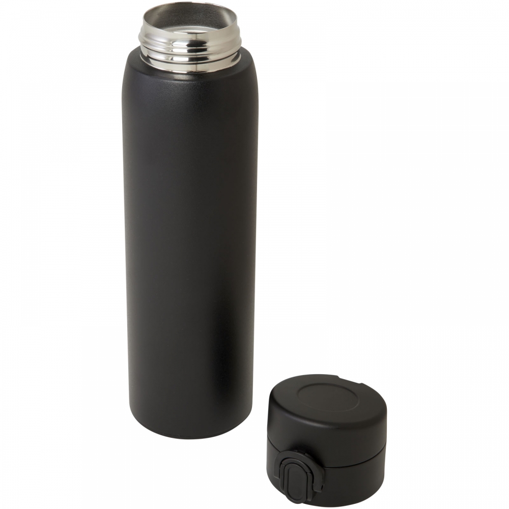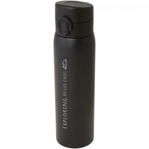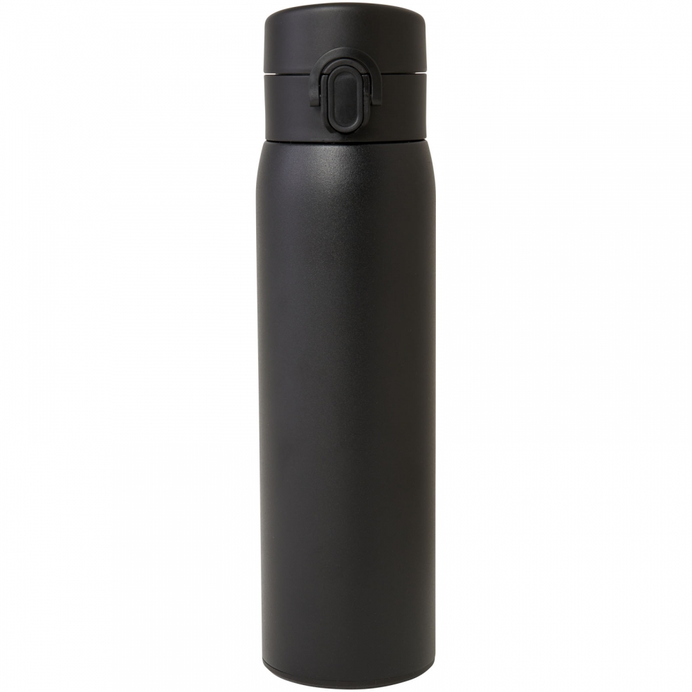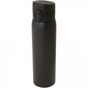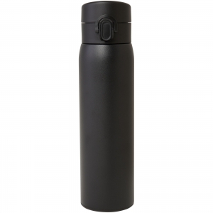 Artikel-Nr: CPO10078890Elegante, RCS-zertifizierte Isolierflasche aus recyceltem Edelstahl mit einfachem Öffnungsmechanismus per Knopfdruck. Die Flasche ist auslaufsicher, und dank der Kupfer-Vakuumisolierung bleiben die Getränke mehrere Stunden lang heiß oder kalt. Das Fassungsvermögen beträgt 450 ml. Verpackt in einer Geschenkbox aus Recyclingkarton.