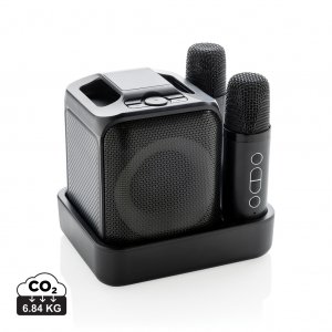 Artikel-Nr: XND3310601Das hochwertige Karaoke-Set mit zwei Mikrofonen, ermöglicht es Ihnen, mit Ihren besten Freunden in Stereo zu singen. Der Lautsprecher und das Mikrofon werden mit einer Induktionsladestation geliefert, sodass Sie alle drei gleichzeitig aufladen können. Starten ein Musikvideo mit Text ein oder aktivieren Sie den Text in Ihrem Musikplayer und machen Sie sich bereit für stundenlangen Spaß! Der 5W-Lautsprecher ist mit einem 2000mah-Akku ausgestattet, der eine Betriebsdauer von bis zu 6h ermöglicht. Der Lautsprecher unterstützt auch TF-Karten & USB für Musik. Wenn Sie die Mikrofone verwenden, können Sie sich bis zu 10m vom Lautsprecher entfernen. Der Lautsprecher besteht aus RCS (Recycled Claim Standard) zertifiziert recyc. ABS. Gesamter rec. Inhalt: 53%, bezogen auf das Gesamtgewicht des Artikels. Die RCS-Zertifizierung gewährleistet eine vollständig zertifizierte Lieferkette der rec. Materialien. Inklusive Type-C-Ladekabel aus RCS-zertifiziert rec. TPE. Verpackt im FSC®-Mix. PVC-frei.