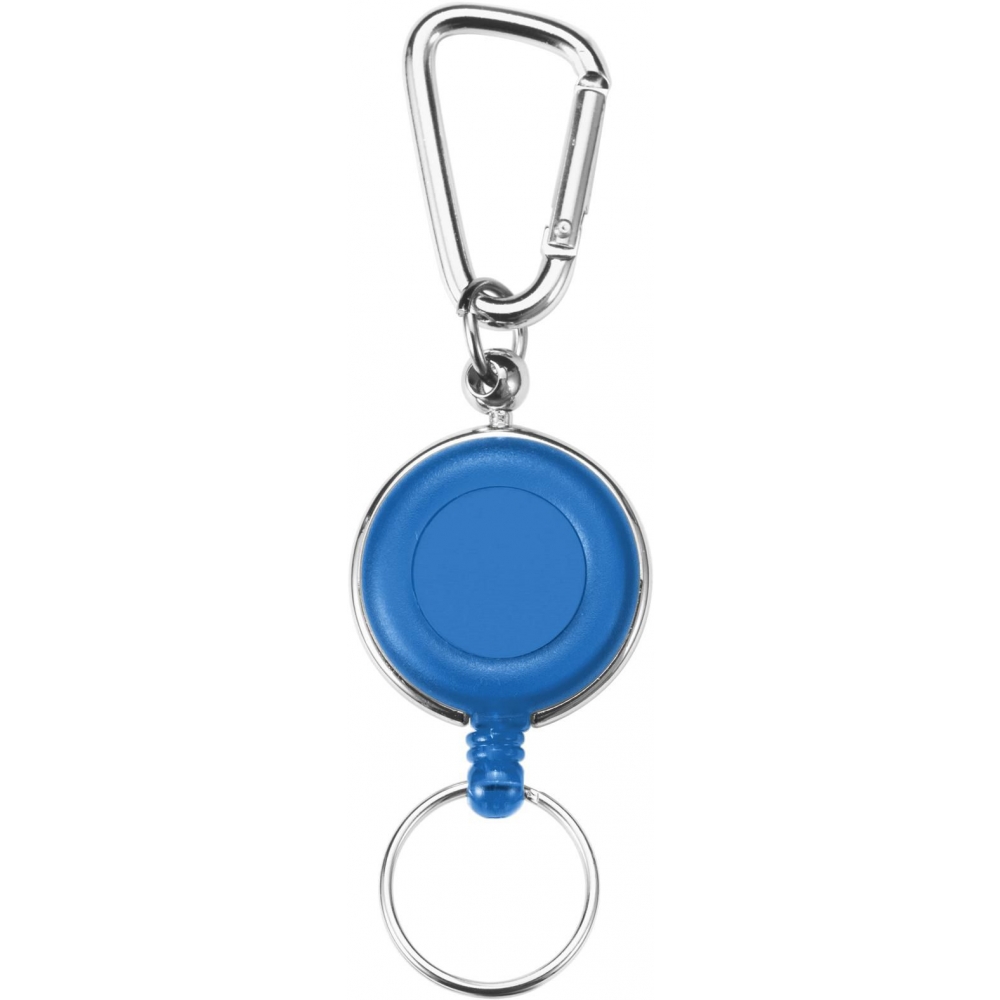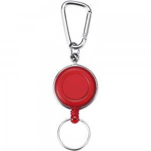 Artikel-Nr: GIV3180023Ausweishalter aus Metall, mit farbig abgesetztem Kunststoffring, Karabinerhaken aus Metall und Nylon-Ausziehleine (bis ca. 70 cm).