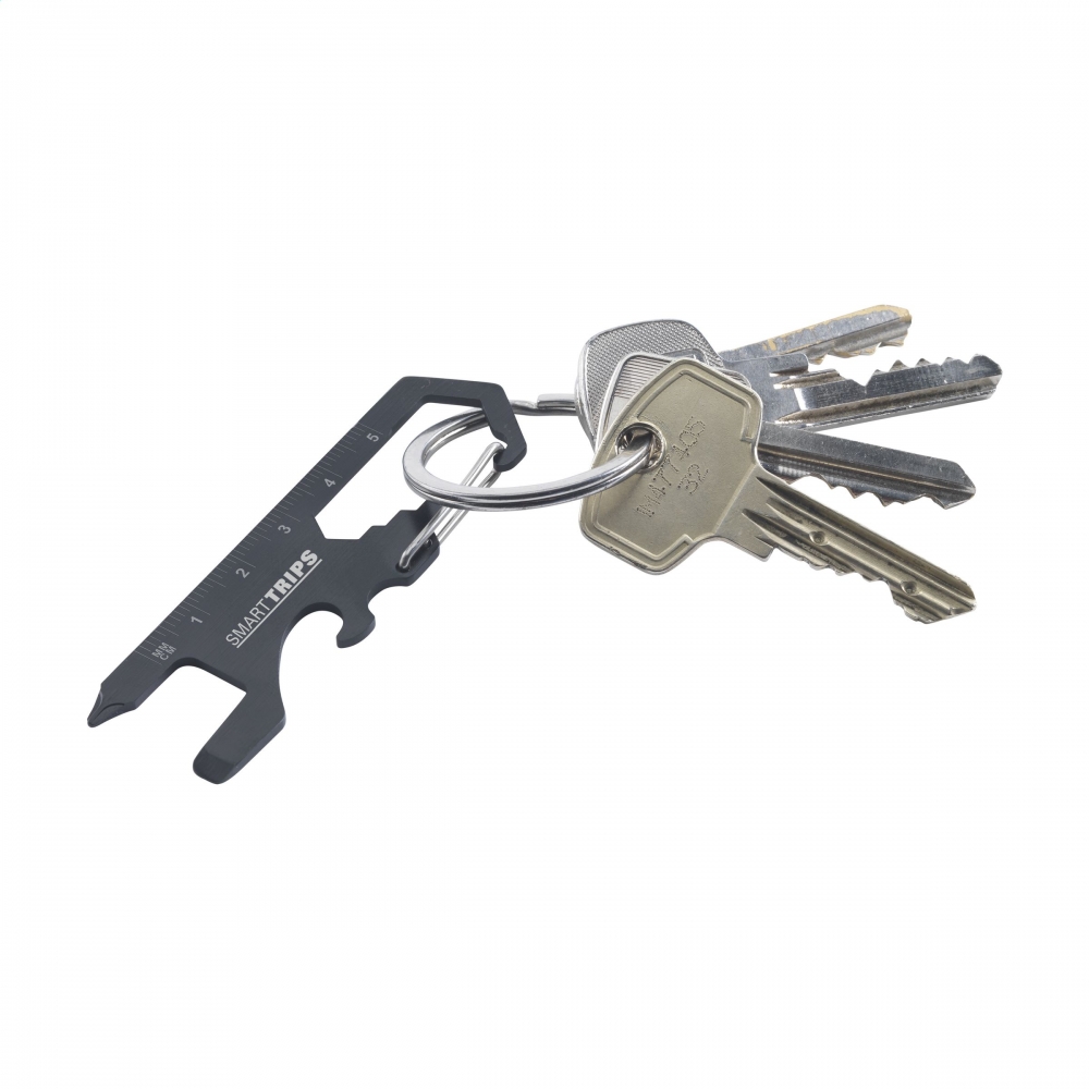 Artikel-Nr: CLP059098RVS-Multifunktionswerkzeug im Taschenformat mit 8 Funktionen, Flaschenöffner, Karabinerhaken, Kreuzschlitzschraubenzieher, flacher Schraubenzieher, Inbusschlüssel in 3 Größen, Lineal (5 cm). Durch die kleine Größe kann es sehr einfach an einen Schlüsselbund befestigt werden.