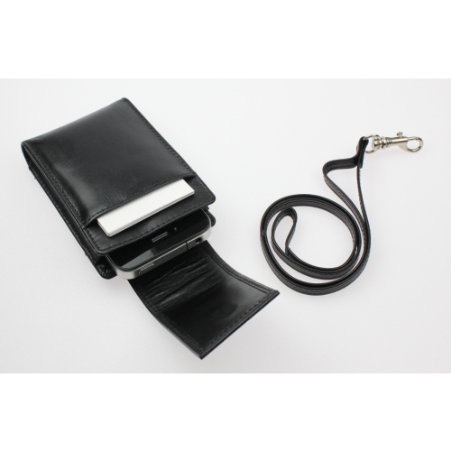Artikel-Nr: 18829080001Smartphone-Etui aus Vollrindleder, 1 Hauptfach, 1 separates Vorfach, Überschlagklappe mit verdecktem Magnet gesichert. Rückseite abnehmbares Lanyard, passend für gängige Smartphones, Vollrindleder (NDM), leicht genarbt, schwarz