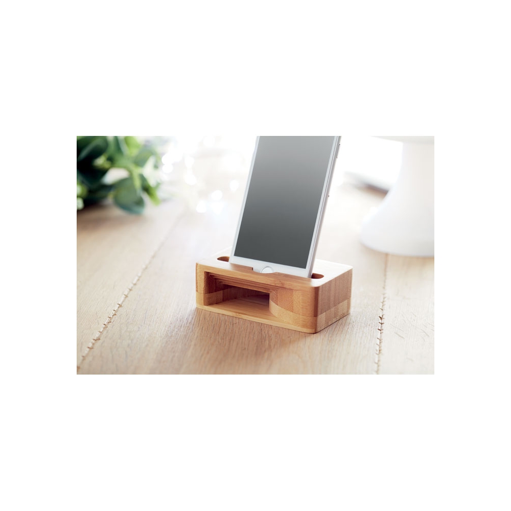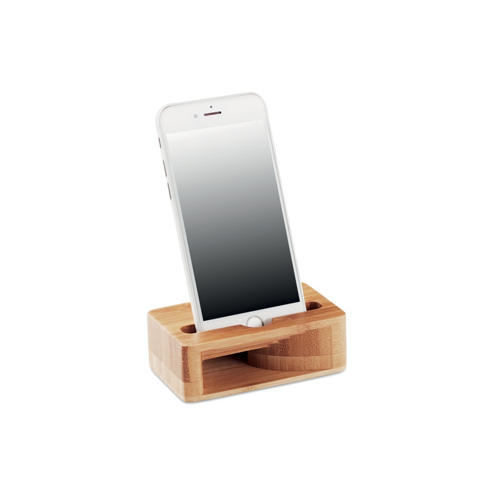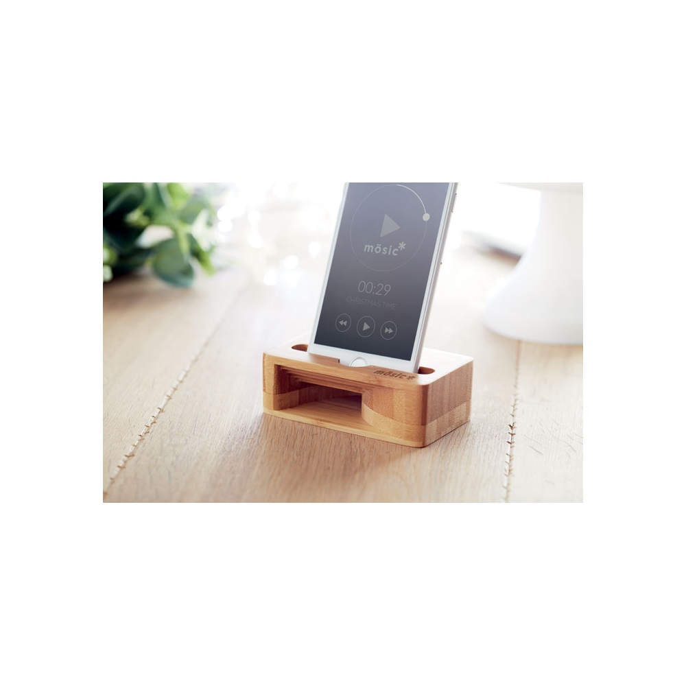 Artikel-Nr: OCBMO9706-40Smartphone Halter mit Klangverstärker. Durch die spezielle Kammer verbessert der hölzerne Verstärker den Klang Ihres Smartphones. Bambus ist ein natürliches Produkt, es kann daher zu leichten Abweichungen in Farbe, Dekor und Maßen kommen. FSC®-certified | FSC 100%, N5.7, FSC-C213206