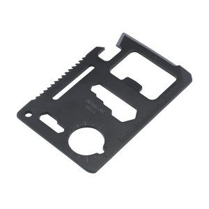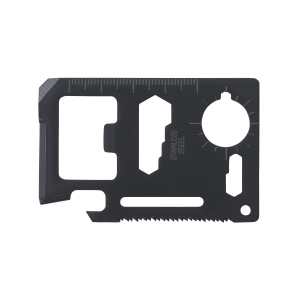 Artikel-Nr: CLP146098Multitool aus Edelstahl in Kreditkartenformat mit 11 Funktionen: Dosenöffner, Schraubenzieher, Lineal, Kapselheber, Schraubenschlüssel, Flügelzange, Säge, Winkelmesser, 2-seitiger Schraubenschlüssel und Schlüsselanhänger. In einem Etui aus Imitatleder. Inklusive Gebrauchsanweisung.