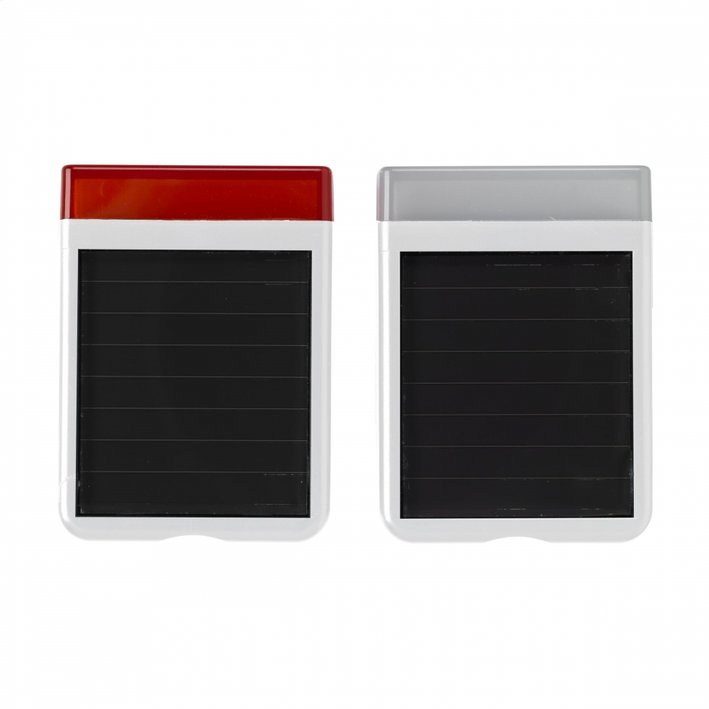 Artikel-Nr: CLPW16510WoW! Set von wasserdichten, ABS Fahrradlampen mit Solarenergie. Die Leuchten sind mit einem effizienten Solarmodul ausgestattet, das die Batterie immer geladen hält. Front- und Rücklicht mit je 2 LED-Leuchten und stabilem Gehäuse. Aufladen: in der Sonne innerhalb von 3 Stunden. Lädt an einem bewölkten Tag 50 % auf. Einstellbares Blink- und Dauerlicht. Das Licht ist hell genug, um aus 100 Metern Entfernung sichtbar zu sein. Einfach und schnell mit Klettbändern zu befestigen. Wird einzeln in einem Kraftkarton geliefert.