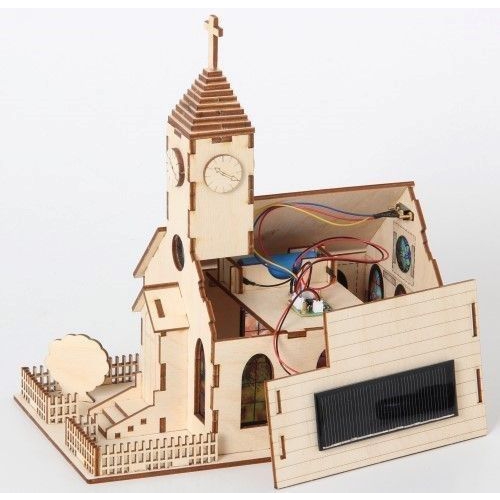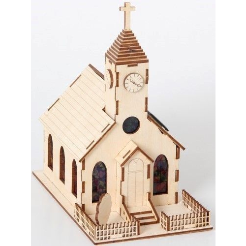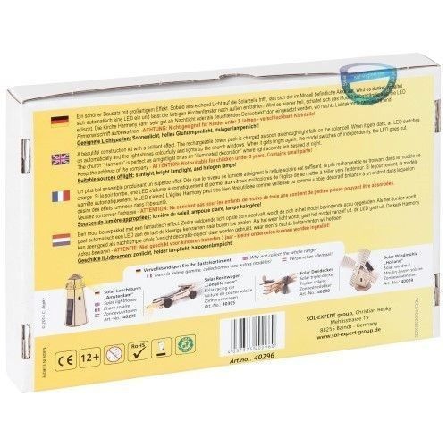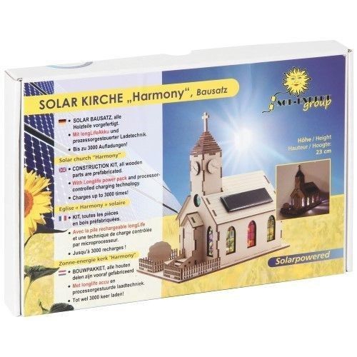 Artikel-Nr: 375110485Ein schöner Bausatz mit großartigem Effekt. Sobald genügend Licht auf die Solarzelle trifft, lädt sich der im Modell befindliche Akku auf. Wird es dunkel, schaltet sich automatisch eine LED ein und lässt die farbigen Kirchenfenster nach außen erstrahlen. Wird es wieder hell, schaltet sich das Modell selbständig aus, die LED erlischt. Die Kirche kann sehr gut als Nachtlicht oder als leuchtendes Dekoobjekt dort eingesetzt werden, wo nachts Lichtakzente gewünscht sind. Höhe: 23 cm. Achtung! Nicht geeignet für Kinder unter 36 Monaten.