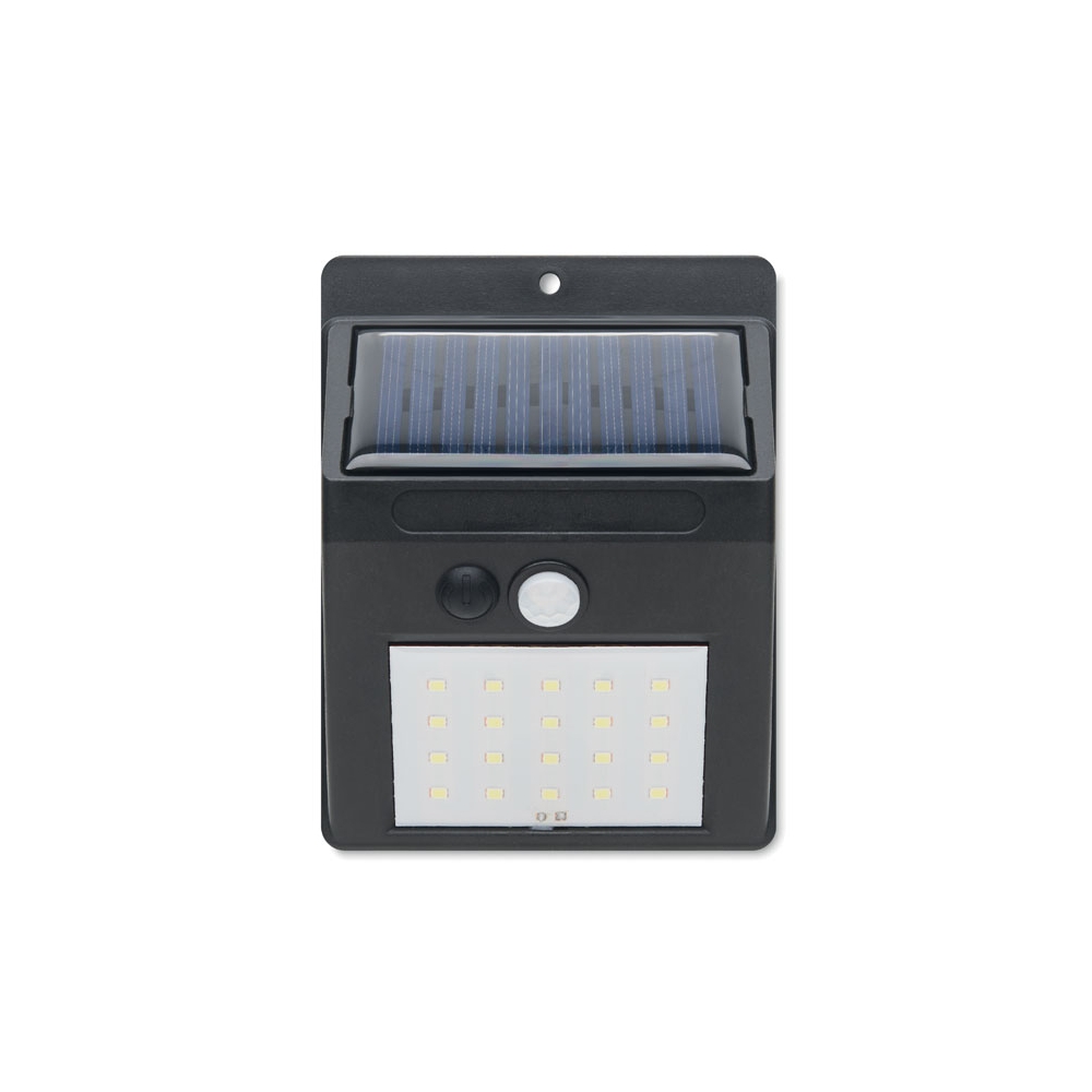 Artikel-Nr: OCBMO2151-03Solarbetriebene LED-Leuchte mit 20 LEDs. Bewegungs- und Nachtsensor. PIR (Passiv-Infrarot-Sensor) Bewegungssensor. CDS-Nachtsensor. Schutzart: IP 44. Akkukapazität: 800 mAh.