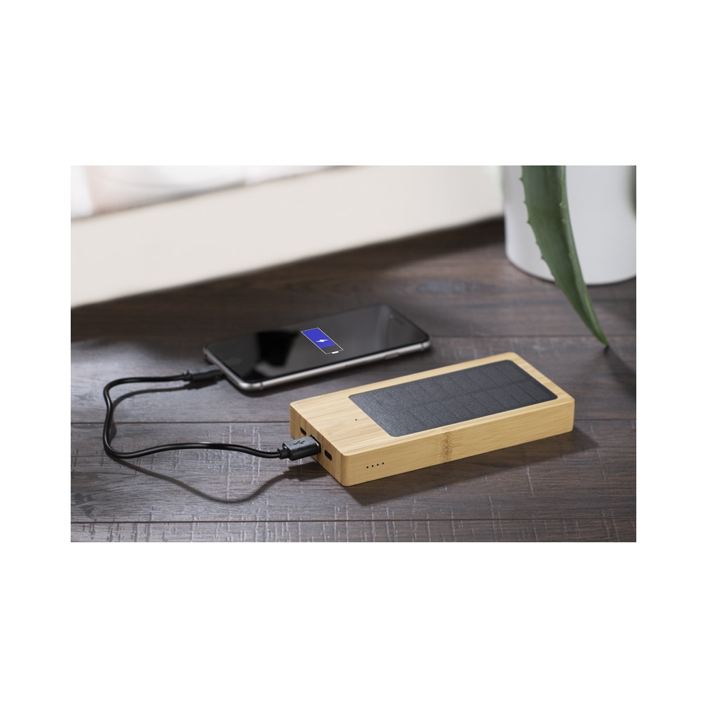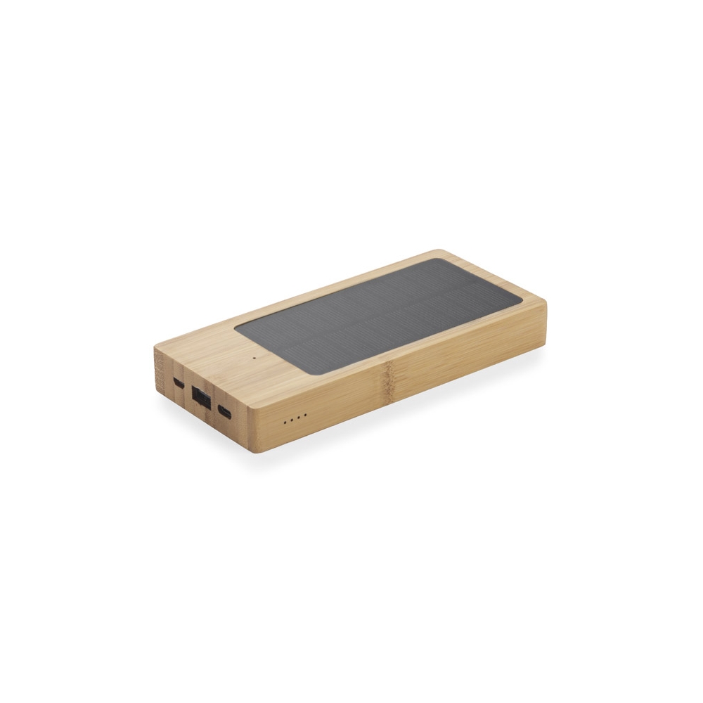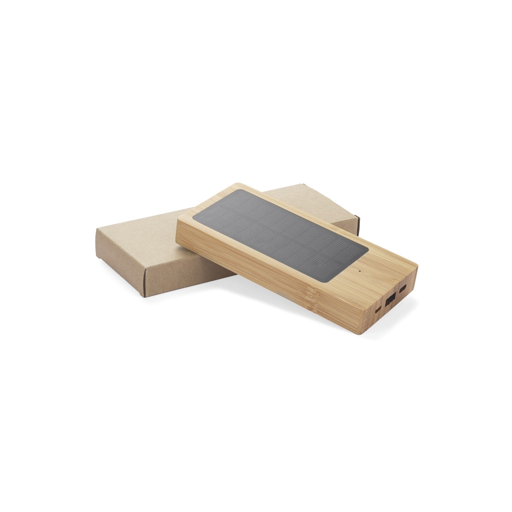 Artikel-Nr: ARD45001Die SONNEN ist eine Powerbank aus biologisch angebautem -Bambus, die mit einem Solarpanel ausgestattet ist und mit Sonnenenergie aufgeladen werden kann. Seine große Kapazität von 10 000 mAh garantiert eine große Energiereserve für mobile Geräte, und das ökologische Design entspricht den Öko-Trends. Die Powerbank verfügt über eine LED-Akkuladeanzeige. Das Set enthält ein USB-Kabel zum Aufladen der Powerbank. Das Produkt entspricht den einschlägigen EU-Richtlinien, ist CE-zertifiziert und hat 1 Jahr Garantie. Technische Daten: Eingang (Micro USB und USB Typ C) 5V/2A (max), USB-Ausgang 5V/2A (max), Lithium-Polymer-Akku.