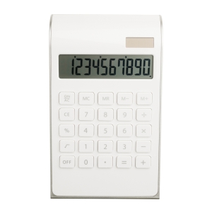 Artikel-Nr: RFS60154-WESRGeschwungener und formschöner Tischrechner mit Dualpower (Solar und Batterie). Die Seiten des Taschenrechners sind farblich abgesetzt und bilden einen angenehmen Kontrast zur weißen Oberfläche. Die flachen Tasten des Solartaschenrechners sind weiß mit silbernem Aufdruck. Die gut sichtbare Veredelungsfläche kann im Tampondruck (1 bis 4c) oder im UV Druck mit Logo veredelt werden. Das Display zeigt 10 Stellen und die Batterie ist enthalten.