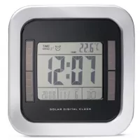 Artikel-Nr: 34251304Holt sich die Energie vom Himmel: Solarbetriebene Wanduhr mit Wochentagsanzeige, wahlweise in Deutsch, Englisch, Französisch oder Niederländisch, 12/24 Stundenmodus, Datum und Thermometer.