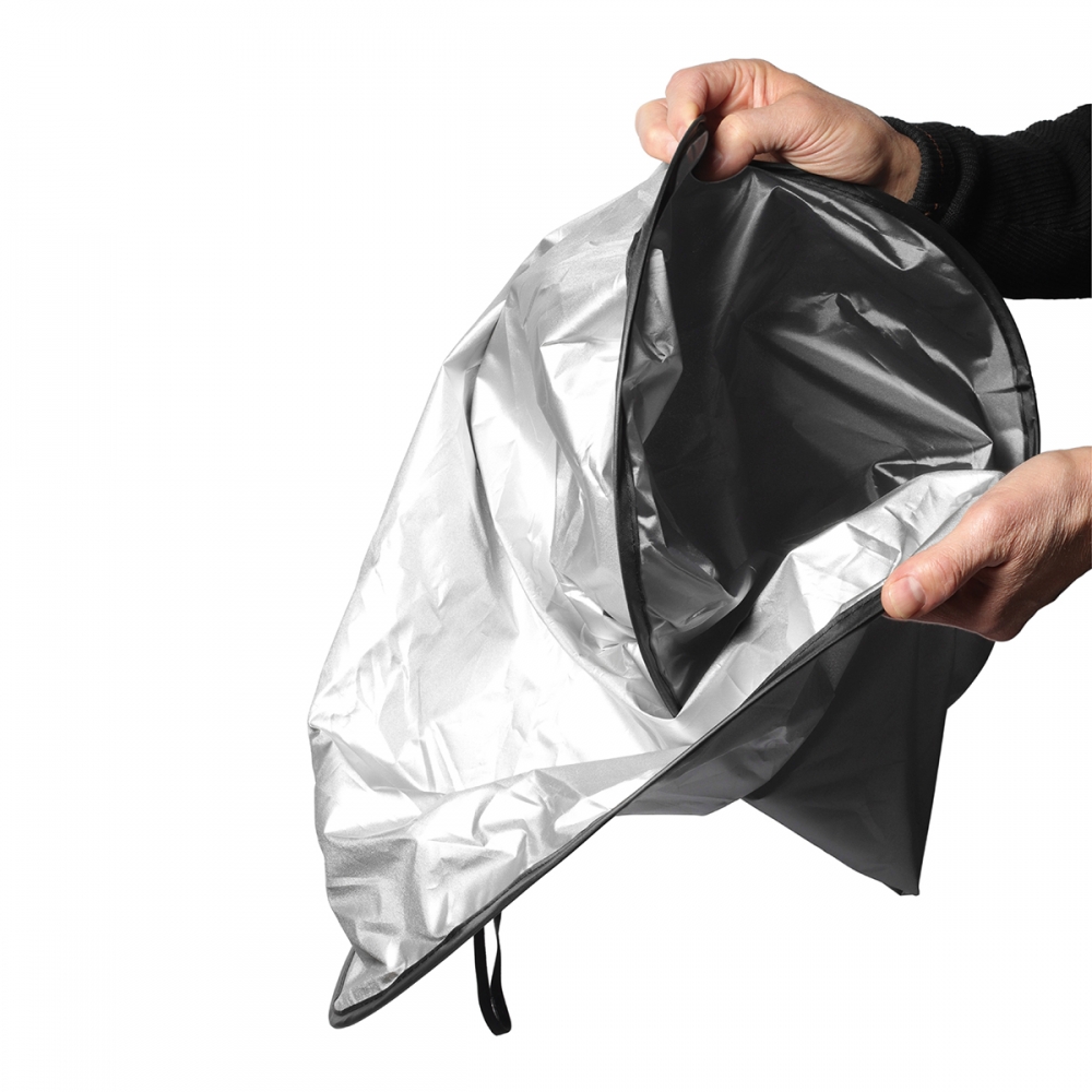 Artikel-Nr: HLA8457-SSonnenblende faltbar, in platzsparender Tasche, 2 Stretchbänder zur Montage auf der Windschutzscheibe