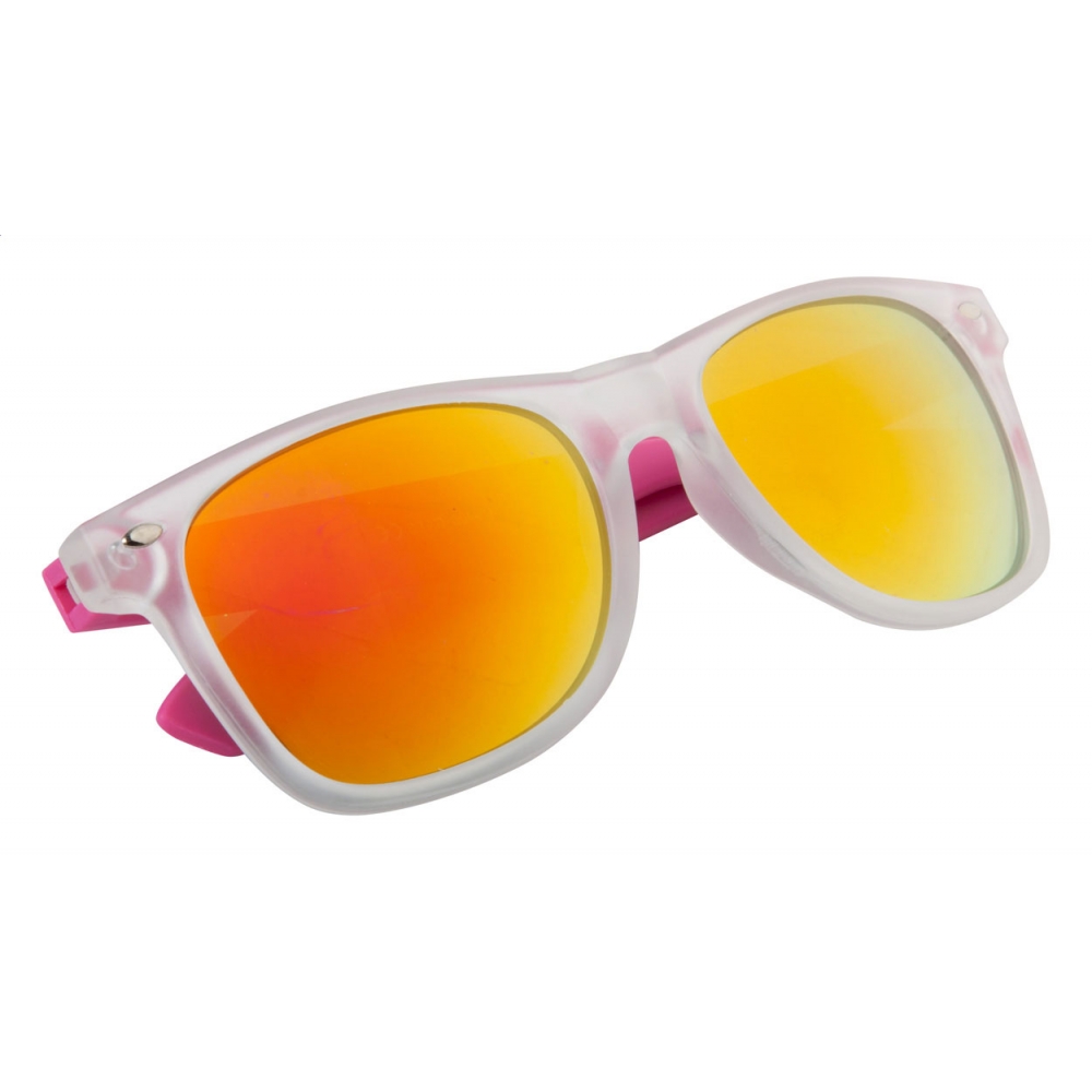 Artikel-Nr: AND741351-25Sonnenbrille aus Kunststoff mit UV400 Schutz, transparenten Rahmen, farbigen Bügeln mit farblich angepasst-verspiegelten Gläsern.