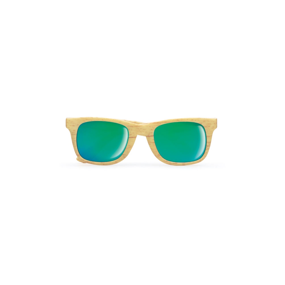Artikel-Nr: OCBMO9022-40Klassische Sonnenbrille mit verspiegelten Gläsern. Gestell in Holz-Optik. UV400-Schutz. ABS.