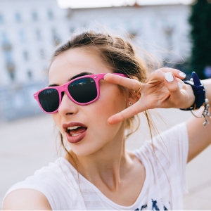 Artikel-Nr: ART86700N0076Zeitgenössische Sonnenbrille mit UV400-Filter, für einen modischen Look. Druck auf einem oder beiden Bügeln möglich.