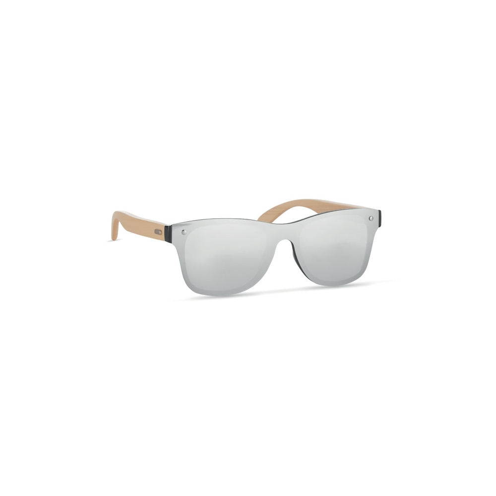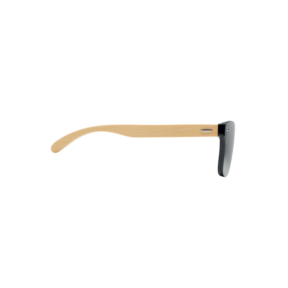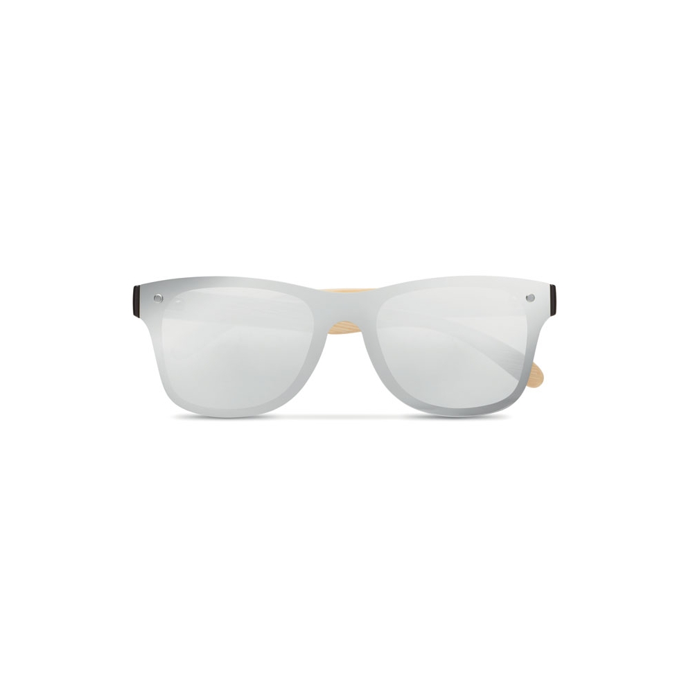 Artikel-Nr: OCBMO9863-17Sonnenbrille mit Bügeln aus Bambus. Komplett verspiegelte Gläser. UV400-Schutz. Da Bambus ein natürliches Material ist, kann der Farbton pro Artikel variieren.