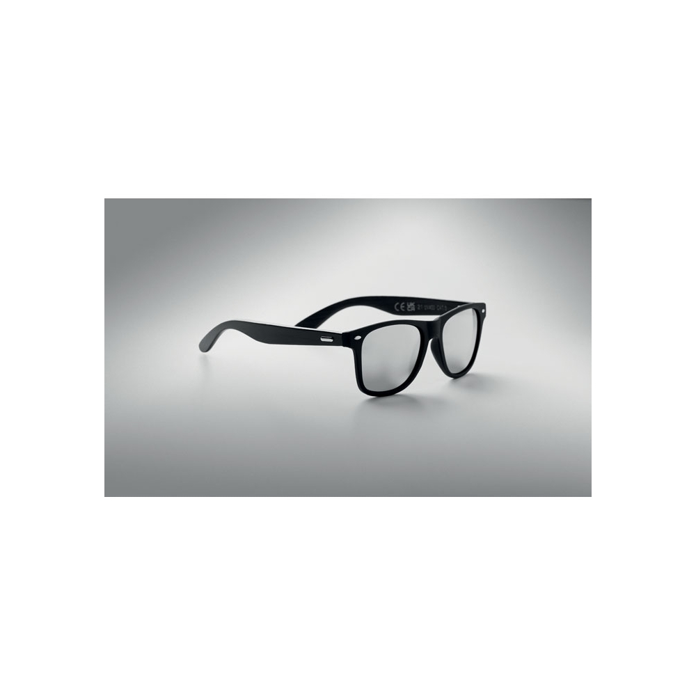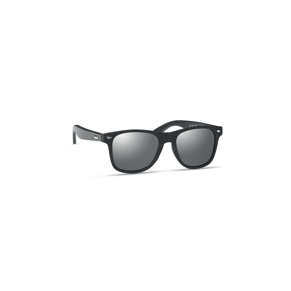 Artikel-Nr: OCBMO6492-17Sonnenbrille mit schwarz beschichteten Bügeln aus Bambus. Rundum verspiegelte Gläser. UV400-Schutz. Bambus ist ein natürliches Produkt, es kann daher zu leichten Abweichungen in Farbe, Dekor und Maßen kommen.
