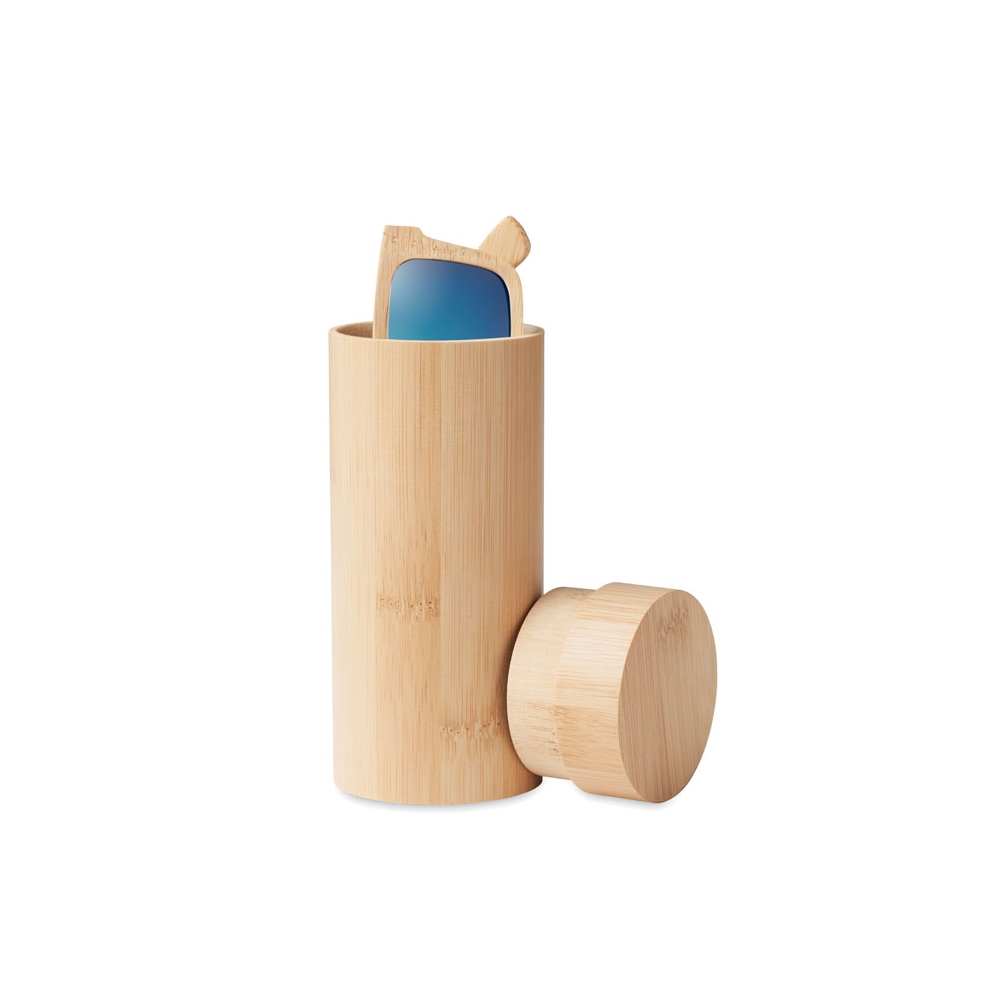 Artikel-Nr: OCBMO6454-40Sonnenbrille aus Bambus. Farbig verspiegelte Gläser. UV400-Schutz. Inkl. Brillenköcher aus Bambus. Bambus ist ein natürliches Produkt, es kann daher zu leichten Abweichungen in Farbe, Dekor und Maßen kommen.