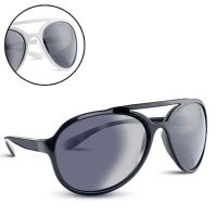 Sonnenbrille mit UV Schutz in modischem Pilotenlook. Abmessung: 14x12x5,3 cm. Druckgröße: 40x20 mm. Erhältlich in den abgebildeten Farben.