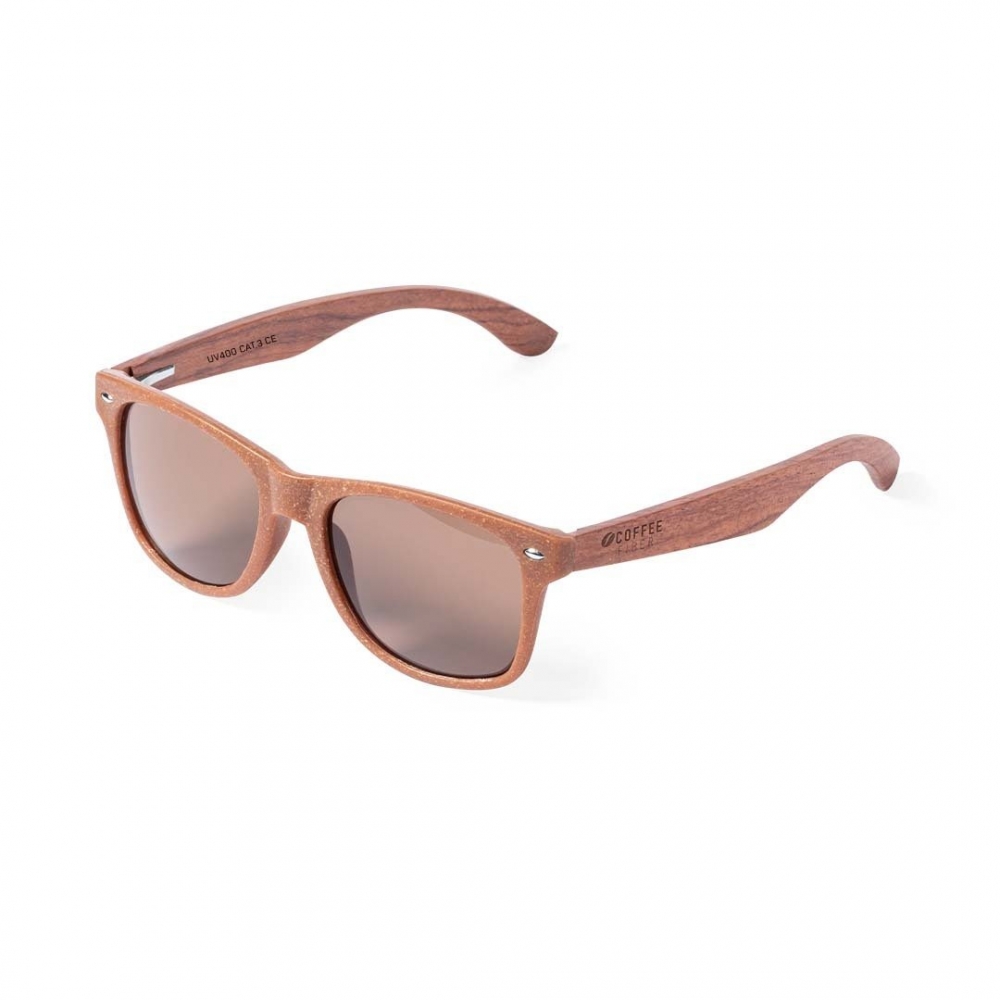 Artikel-Nr: KTO11603000000Sonnenbrille der Nature-Linie mit UV-400-Schutz. Kaffeefaserrahmen und passende Armlehnen aus Naturholz, mit braunen Gläsern. In die Form eingespritzte, markante Kaffeefaser am linken Arm. Präsentiert in einer individuellen Box mit Kraftpapier-Design. Kaffeefasern sind eine Kreislauflösung, die aus der Nutzung der bei der Kaffeeproduktion anfallenden Abfälle gewonnen wird. Eine nachhaltige Alternative, die die Reduzierung des Kunststoffverbrauchs begünstigt, Energie im Herstellungsprozess spart und zum Schutz der Umwelt beiträgt.