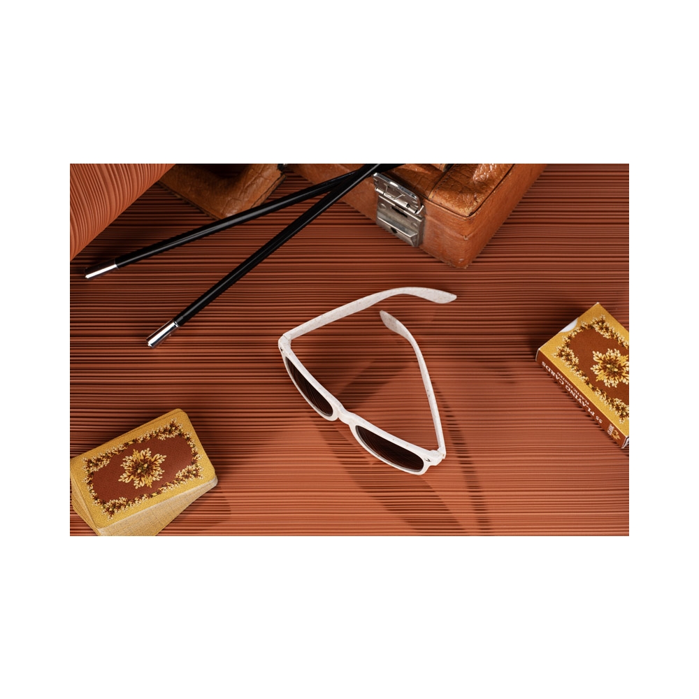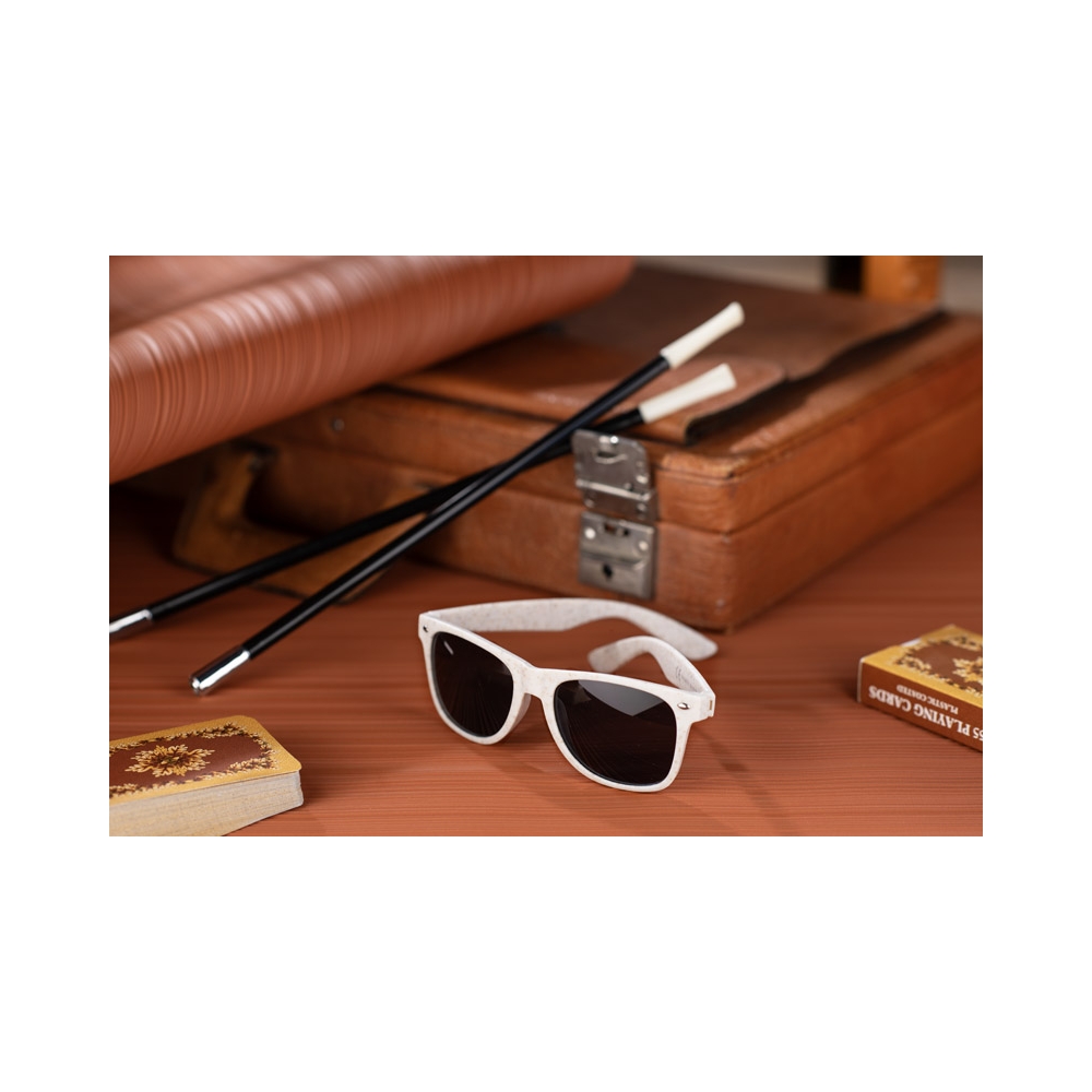 Artikel-Nr: ARD20526-17STRAMI Sonnenbrille aus leichtem Weizenstroh-Kunststoff. Der helle Rahmen und die Bügel verleihen ihr einen modernen, universellen Look. Die klassische Form passt sowohl Männern als auch Frauen. Die Gläser der Filterkategorie 3 (Lichtdurchlässigkeit 8-18%) bieten wirksamen Schutz bei intensivem Sonnenlicht. Ideal für den Strand, Reisen und Outdoor-Aktivitäten. Die Brille ist mit einem UV400-Filter ausgestattet und ist nicht polarisiert.