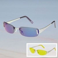 Artikel-Nr: W644cs14435Formschöne rahmenlose Sonnenbrille mit extra breitem Bügel. Der UV-400 Schutz garantiert Ihnen einen 100-prozentigen Sonnenschutz. Dieses Werbepräsent ist einzeln im Polybeutel verpackt. Material: Metall und Polycarbonat, Bügelfarbe Silber/Blau, Gläserfarbe: Dunkelblau. (Auch in Gelb lieferbar 644cs14435-2).