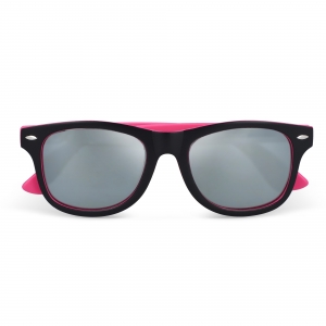 Artikel-Nr: ART86736N0076Stylische Sonnenbrille mit trendigem zweifarbigem Rahmen und auffälligen Spiegelgläsern. UV400-Filter. Eine moderne Wahl für auffällige Promotions und Events.