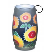 Inhalt: Einzelkartonage mit Windlicht (Glas Motiv Sonnenblumen) und Teelicht