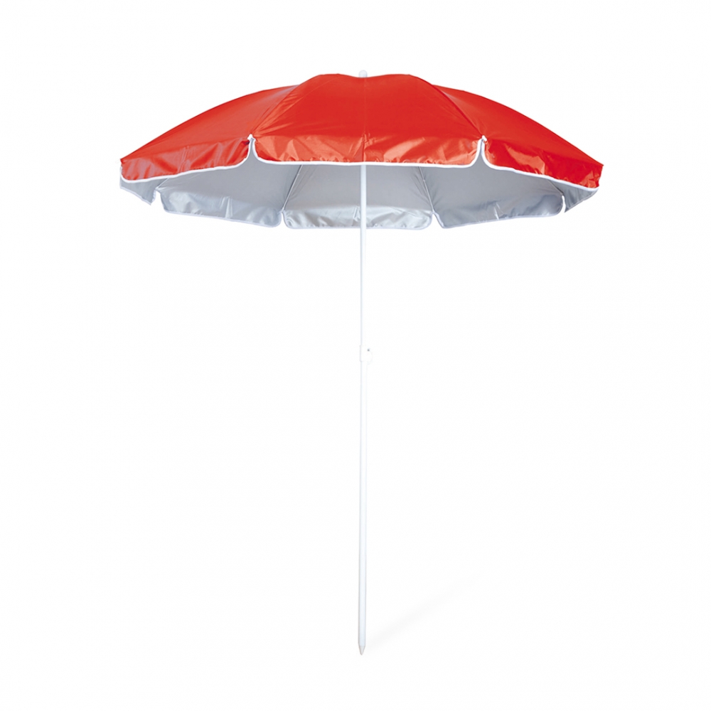 Artikel-Nr: KTO13951003000Sonnenschirm mit 8 Panelen und UV-Schutz aus robustem Nylon und innen in Silbergrau. In einer Vielzahl von von kräftigen Farben. Mit einem Durchmesser von 150 cm und Kontrastpaspel sowie höhenverstellbaren Metallrohren in Weiß. Präsentiert in Nylonhülle mit Schultergurt.