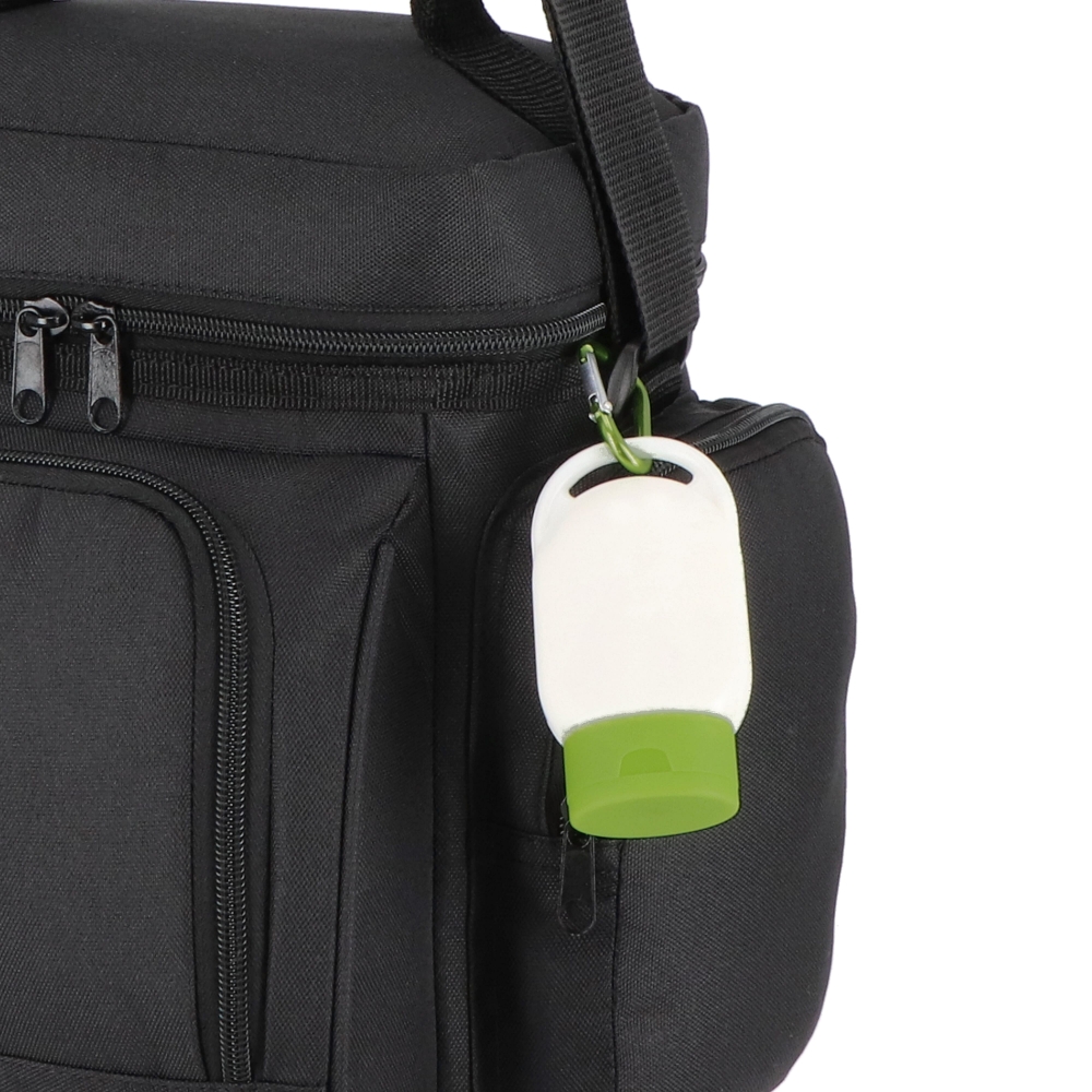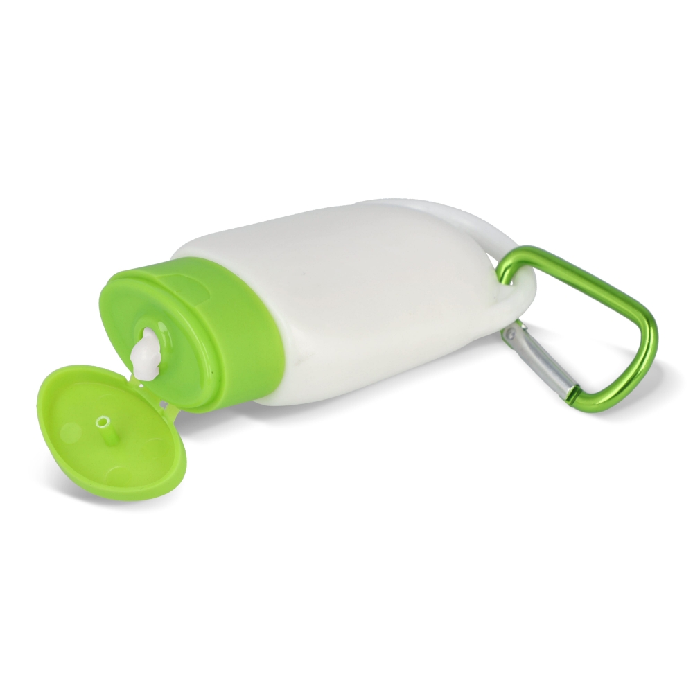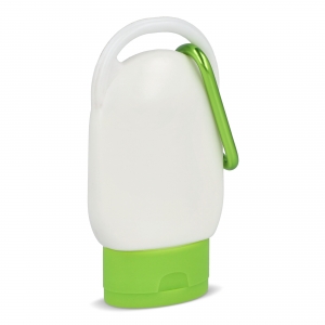 Artikel-Nr: ART91838N0032Praktisches Sonnenschutzmittel mit LSF 30 in einem kompakten Behälter aus recyceltem Kunststoff mit Karabiner. Lässt sich leicht an Taschen befestigen und ist somit ideal für Festivals, Veranstaltungen im Freien oder für unterwegs geeignet.