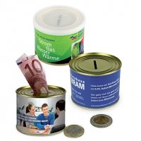Artikel-Nr: 4011230057In dieser Weißblech-Dose findet auch der letzte Groschen platz. Die Individualisierung erfolgt auf der umliegenden Banderole. Optional können Sie einen transparenten Deckel beziehen und machen aus dieser Spardose ein langlebiges Werbegeschenk. Größe: Höhe 5,7 cm Ø 7,5 cm
