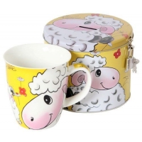 Die Spardose mit Schloss und Schlüsselchen ist aus Metall. Die Tasse ist spülmaschinen- und mikrowellenfest. 0,4 l. Achtung! Kein Spielzeug!