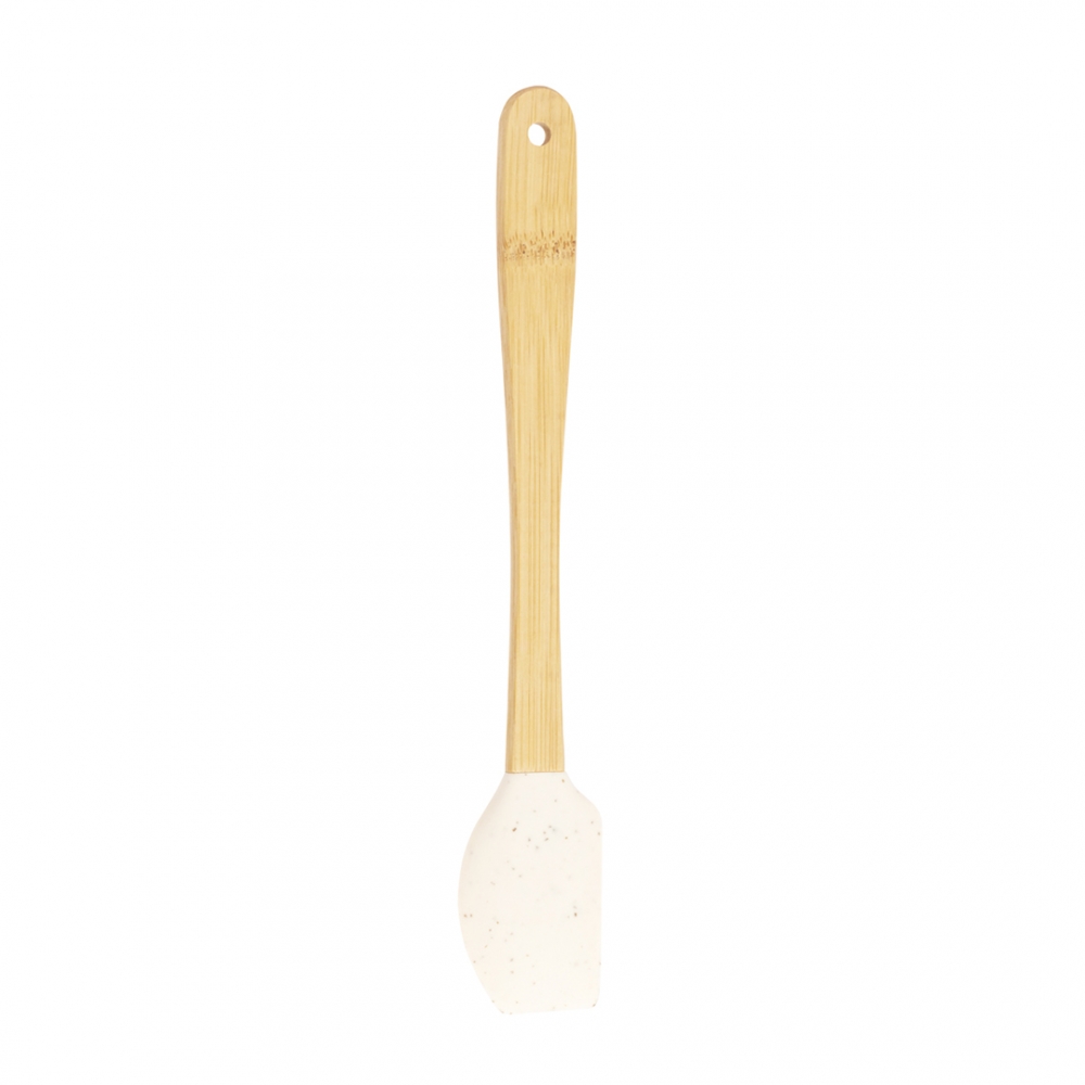 Artikel-Nr: KTO20582013000Küchenspatel mit Silikonende, in attraktiver Naturfarbe. Sein Griff aus Bambus sorgt für Komfort. Präsentiert in einer individuellen Recycling-Papiertüte.