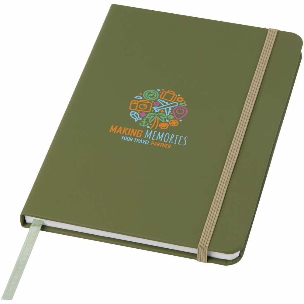 Artikel-Nr: CPO10709164A5 Notizbuch mit farblich passendem elastischen Verschluss und Leseband. Inkl. 96 Blatt (60 g / m²), blanko.