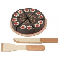 Artikel-Nr: 375103092Inhalt: Tortenplatte, Messer, Tortenheber, sechsteiliger Kuchen. Die Kuchenteile haften dank Klettverschluss aneinander. Alles aus Gummibaumholz. Ab 3 Jahren. Achtung! Nicht geeignet für Kinder unter 36 Monaten.