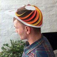 Papierhut der sich beim Aufsetzen spiralförmig entfaltet.