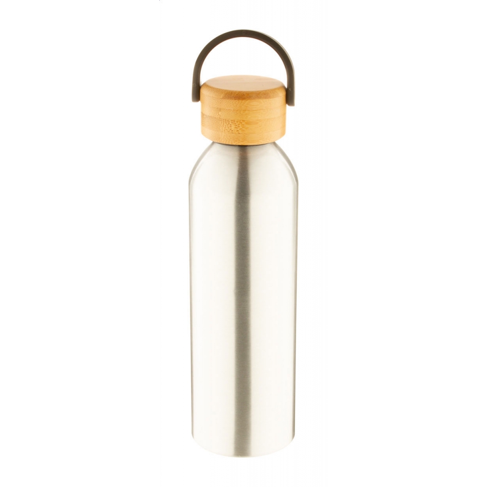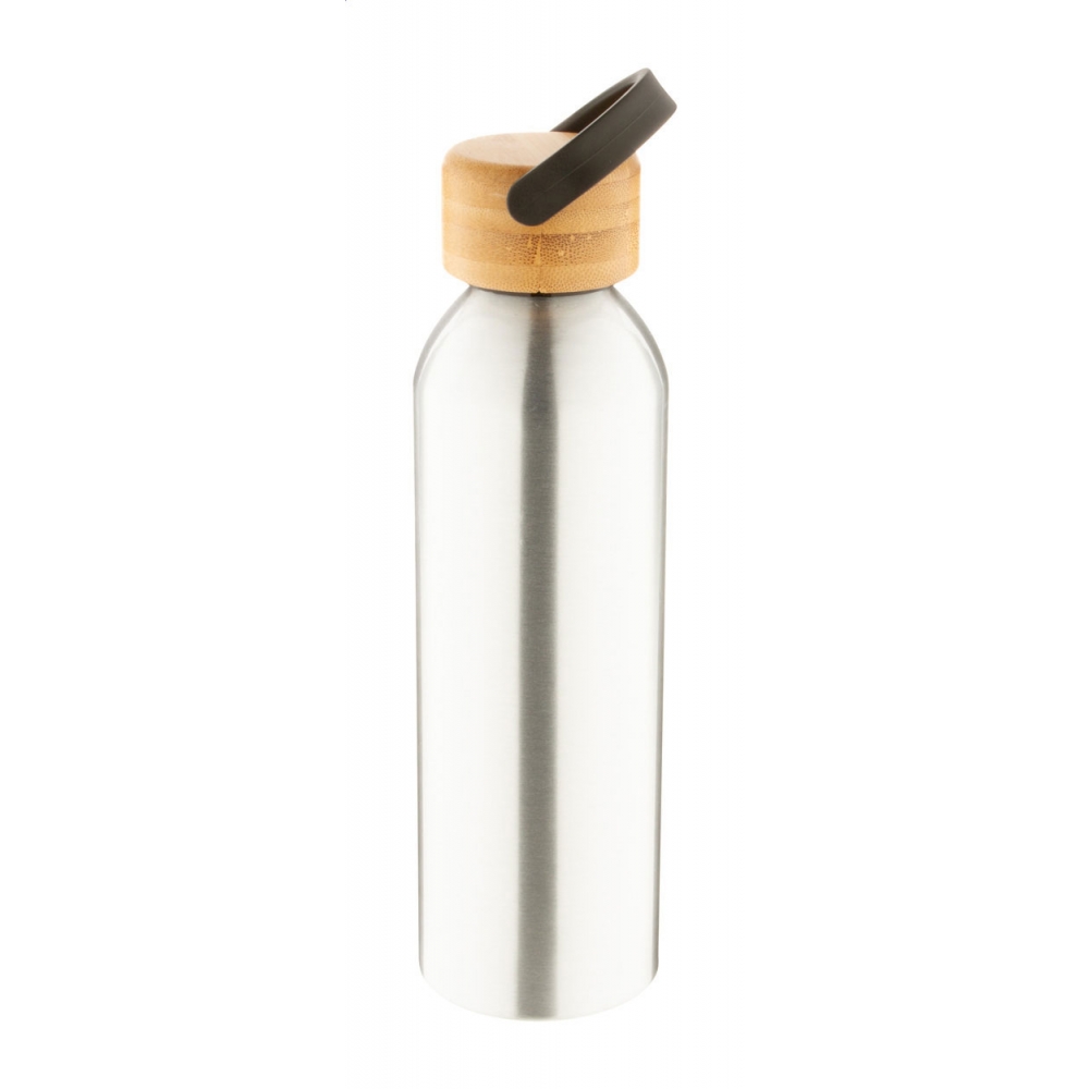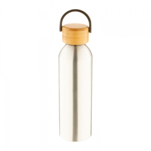 Artikel-Nr: AND800494-21Sportflasche aus Aluminium mit Tragedeckel aus Bambus. Füllmenge: 600 ml.