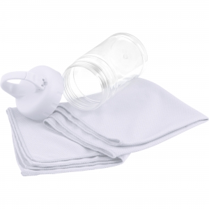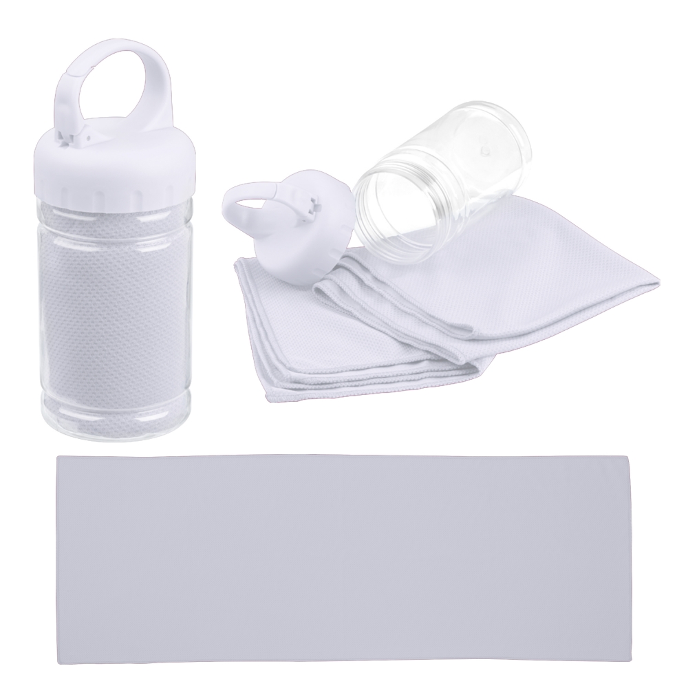 Artikel-Nr: EAG088406Toller Begleiter beim Sport, ständig gekühltes Handtuch (Polyester, Grammatur 160gsm) durch Kapillareffekt, verpackt in einer Kunststoffflasche mit Karabiner. Ihre Werbung drucken wir auf die Flasche.