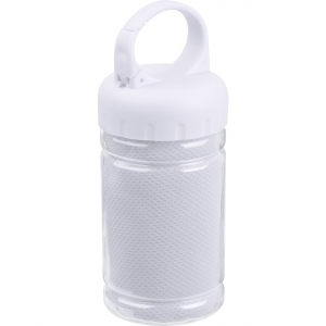 Artikel-Nr: EAG088406Toller Begleiter beim Sport, ständig gekühltes Handtuch (Polyester, Grammatur 160gsm) durch Kapillareffekt, verpackt in einer Kunststoffflasche mit Karabiner. Ihre Werbung drucken wir auf die Flasche.