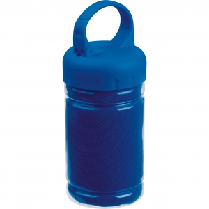 Artikel-Nr: EAG088404Toller Begleiter beim Sport, ständig gekühltes Handtuch (Polyester, Grammatur 160gsm) durch Kapillareffekt, verpackt in einer Kunststoffflasche mit Karabiner. Ihre Werbung drucken wir auf die Flasche.