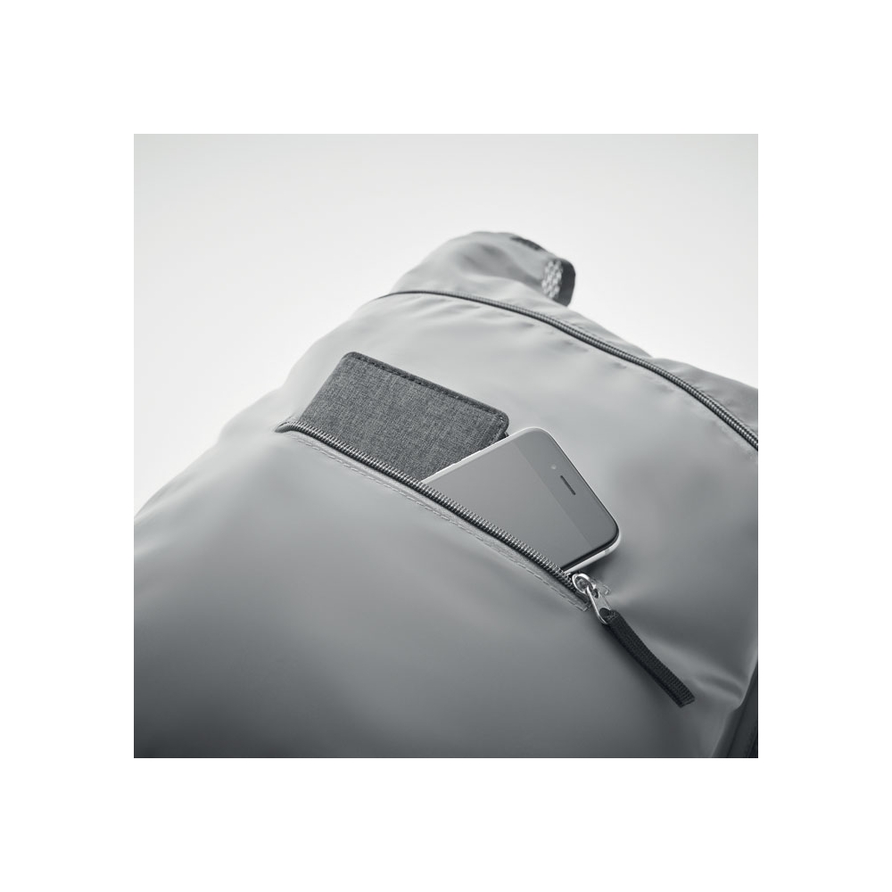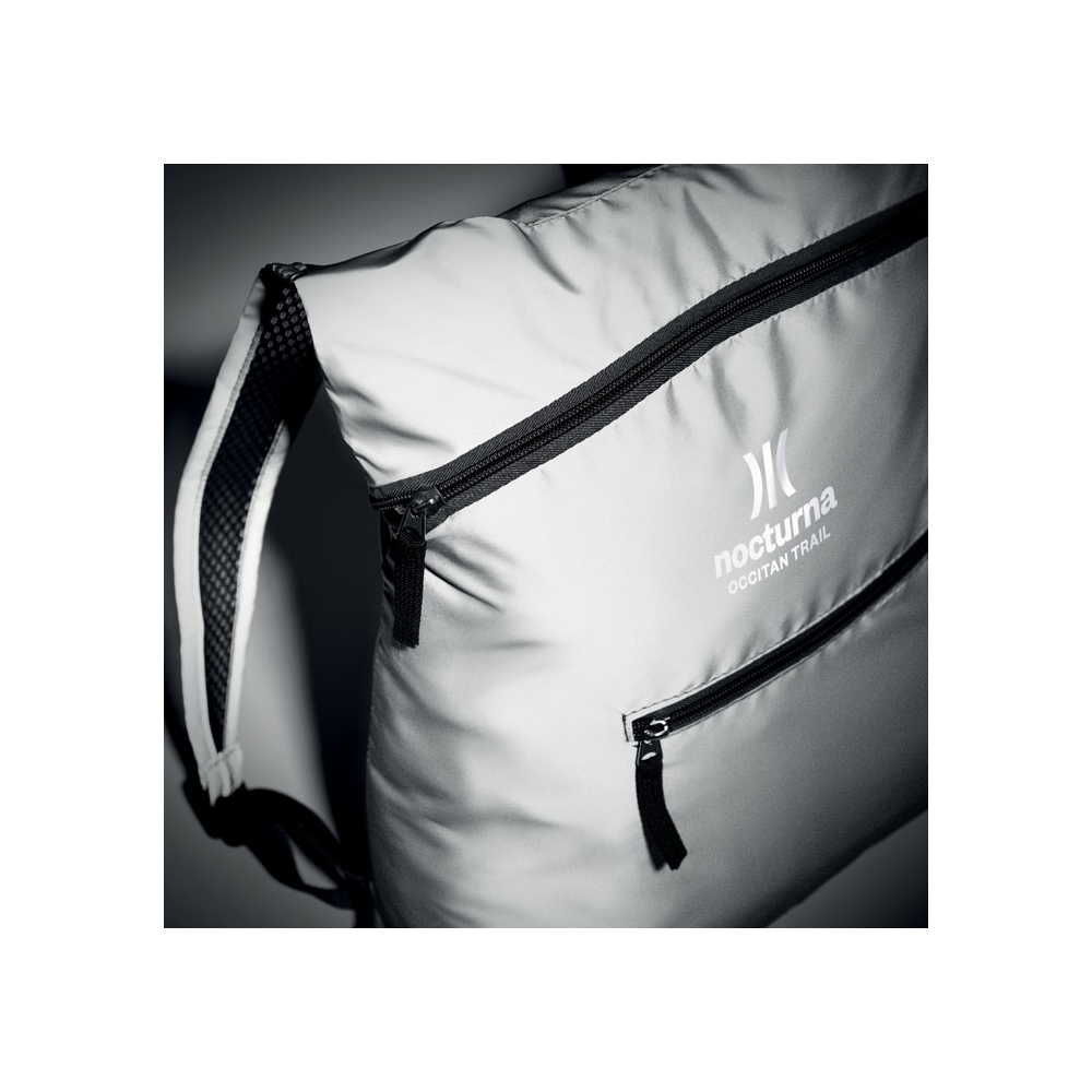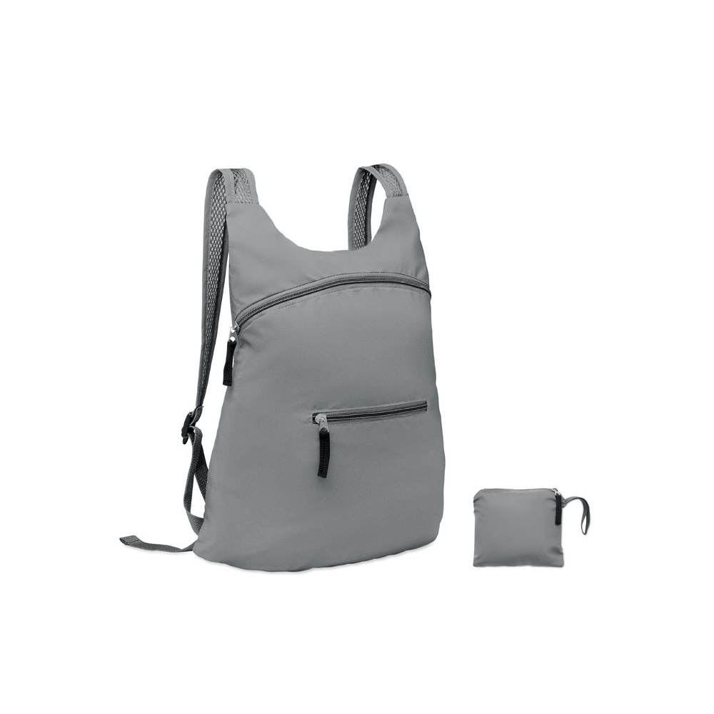 Artikel-Nr: OCBMO6983-16Faltbarer Sportrucksack aus reflektierendem 190T Polyester. Fronttasche mit Reißverschluss. Verstellbare Schultergurte.